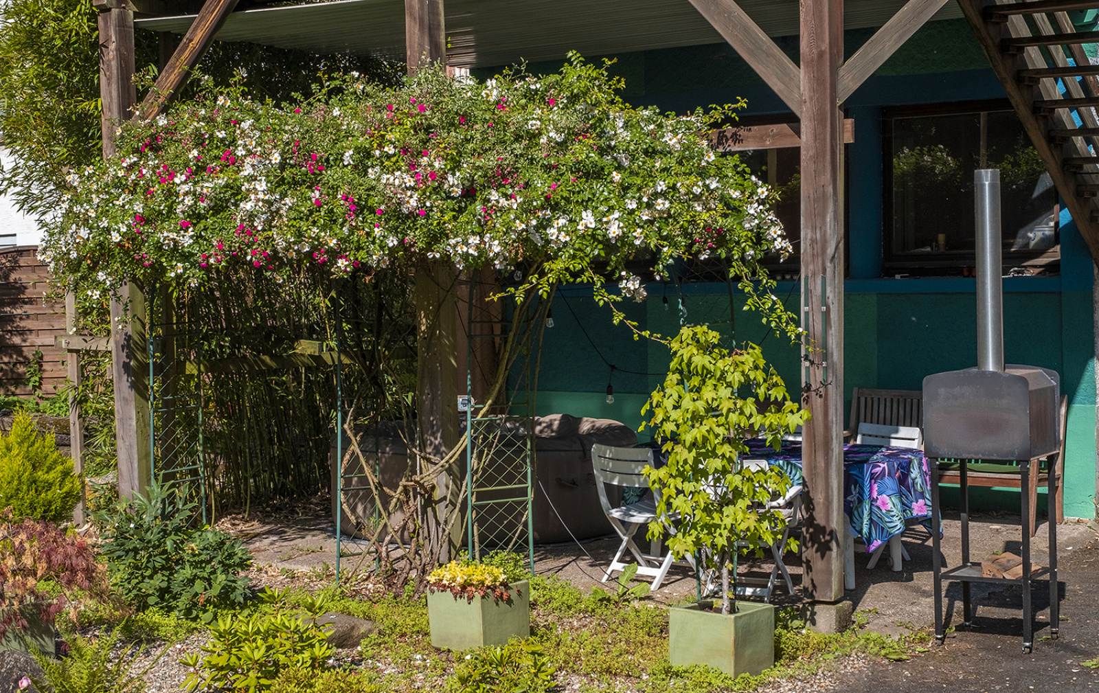 Une terrasse et un accès à votre extérieur s’offrent à vous depuis lesquels vous bénéficiez d'une très agréable vue sur un parc.