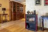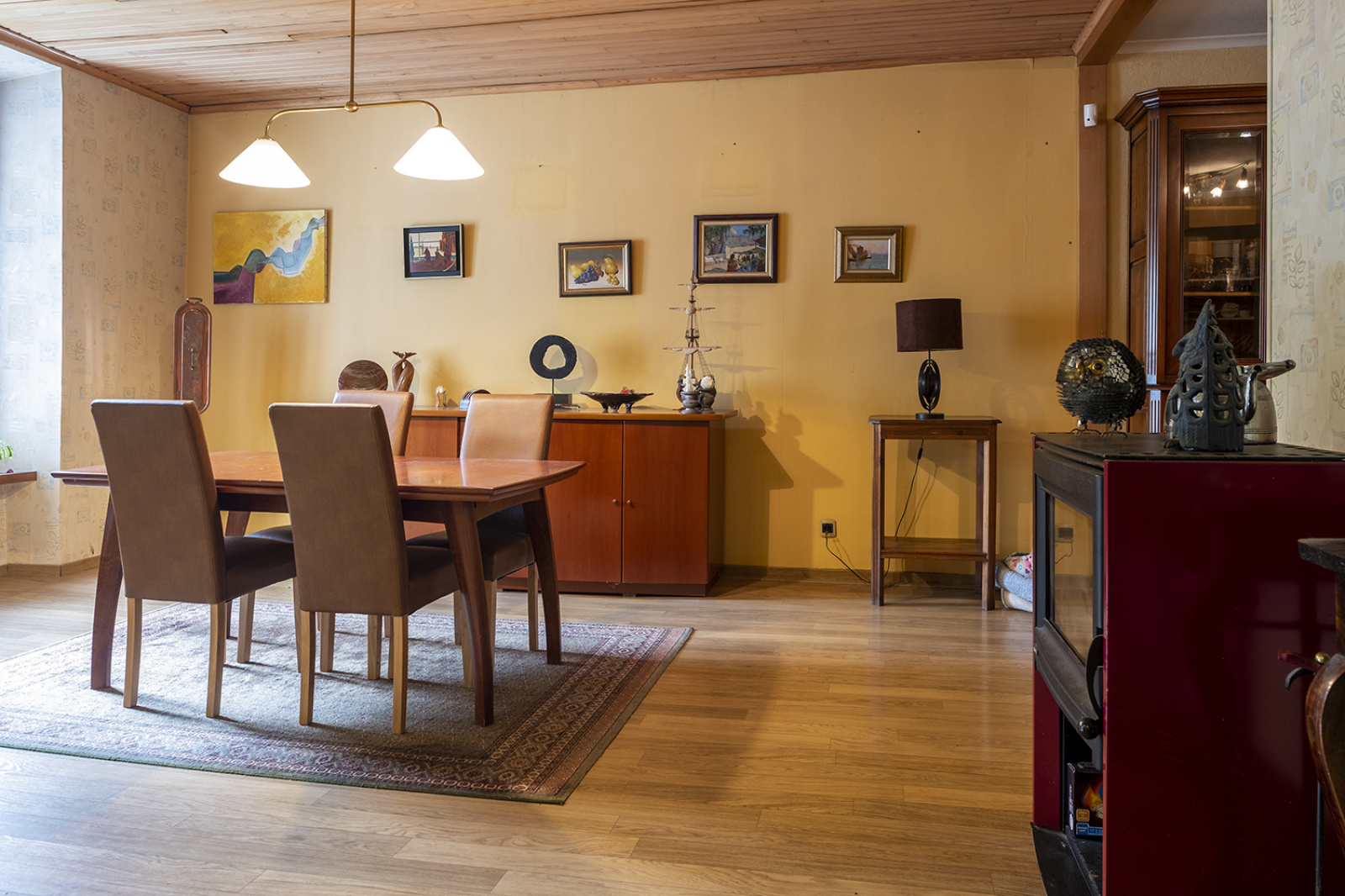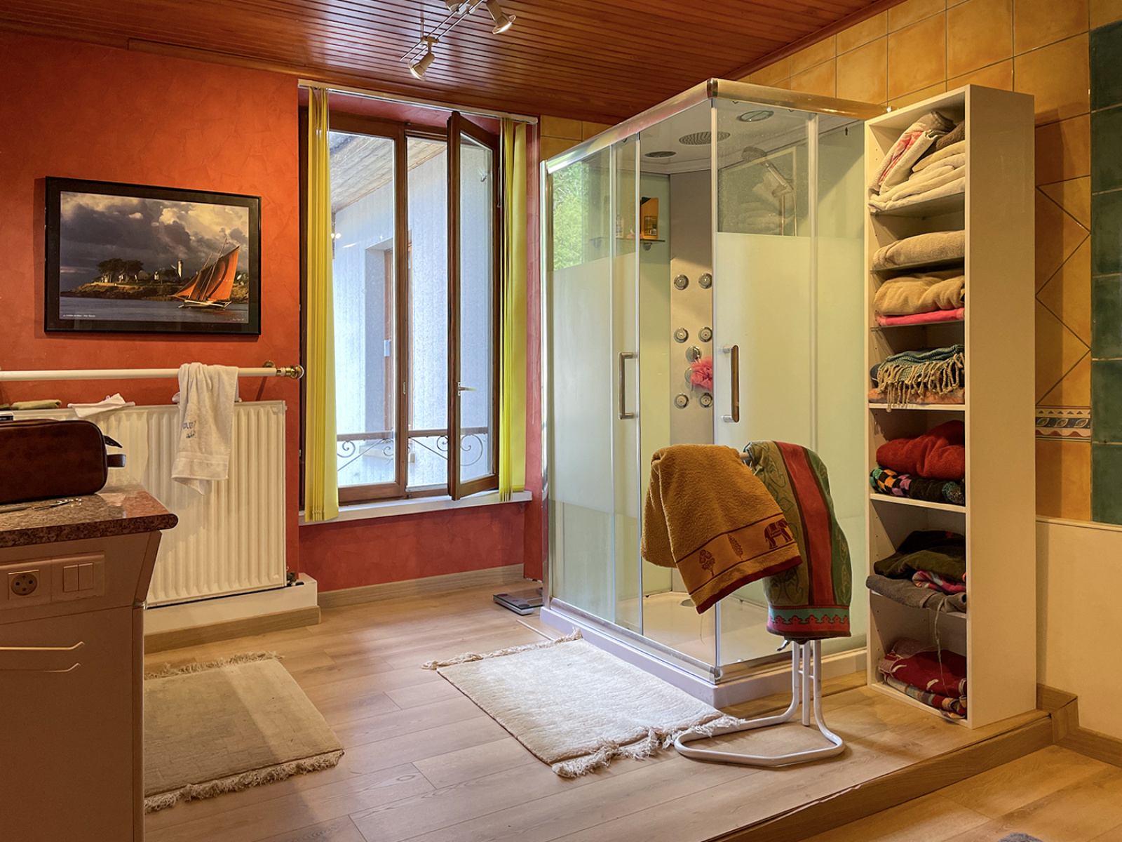 La partie habitation et commerce sont chauffées par une chaudière à condensation au gaz de ville récente (2017) + par un poêle nordique.