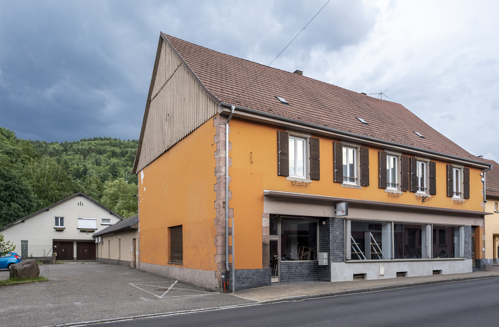 D’une part la bâtisse d’origine de 1848, elle propose au rez-de-chaussée un local commercial (magasin, non exploité à ce jour) d’environ 108 m² ainsi qu'une pièce de stockage/rangement à l’arrière de 23 m² environ.