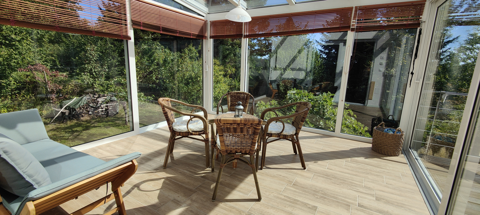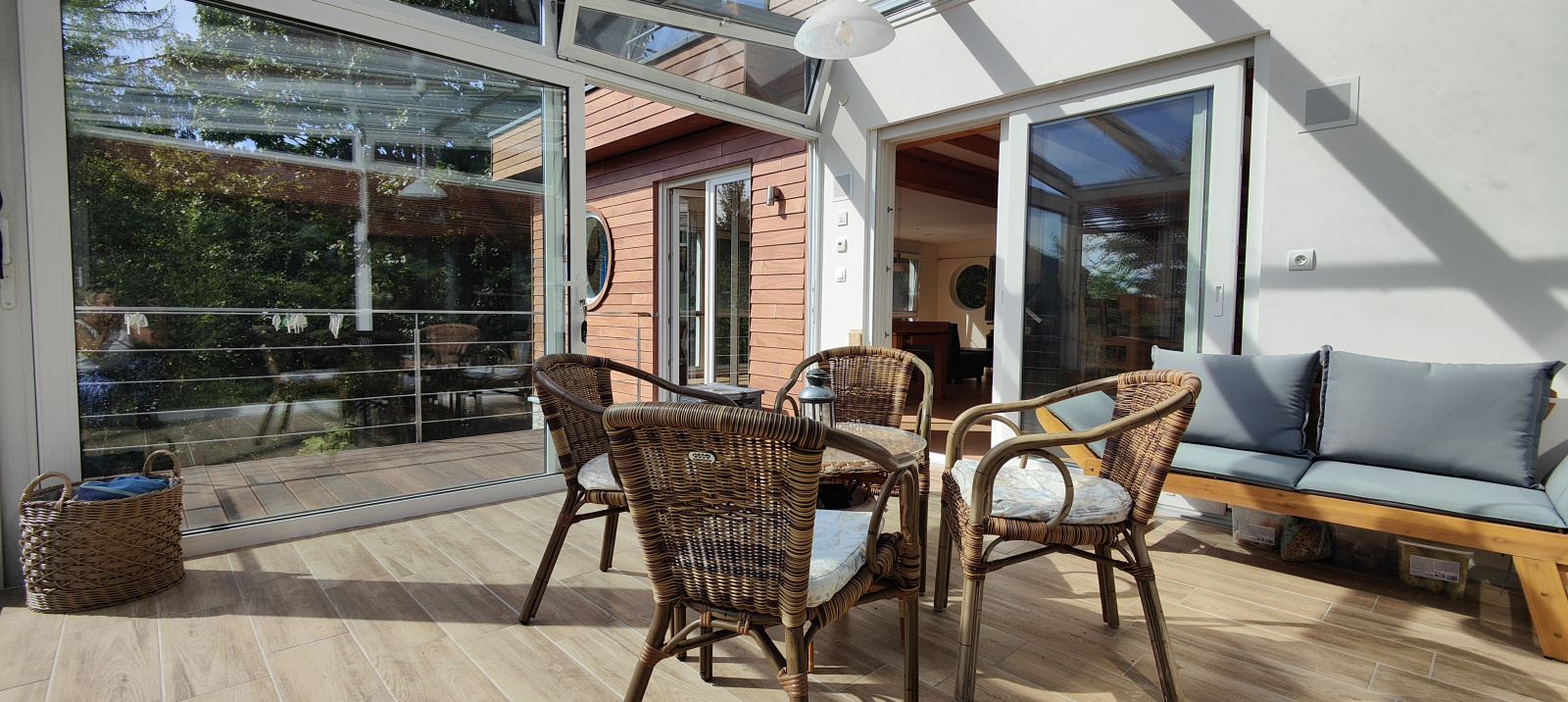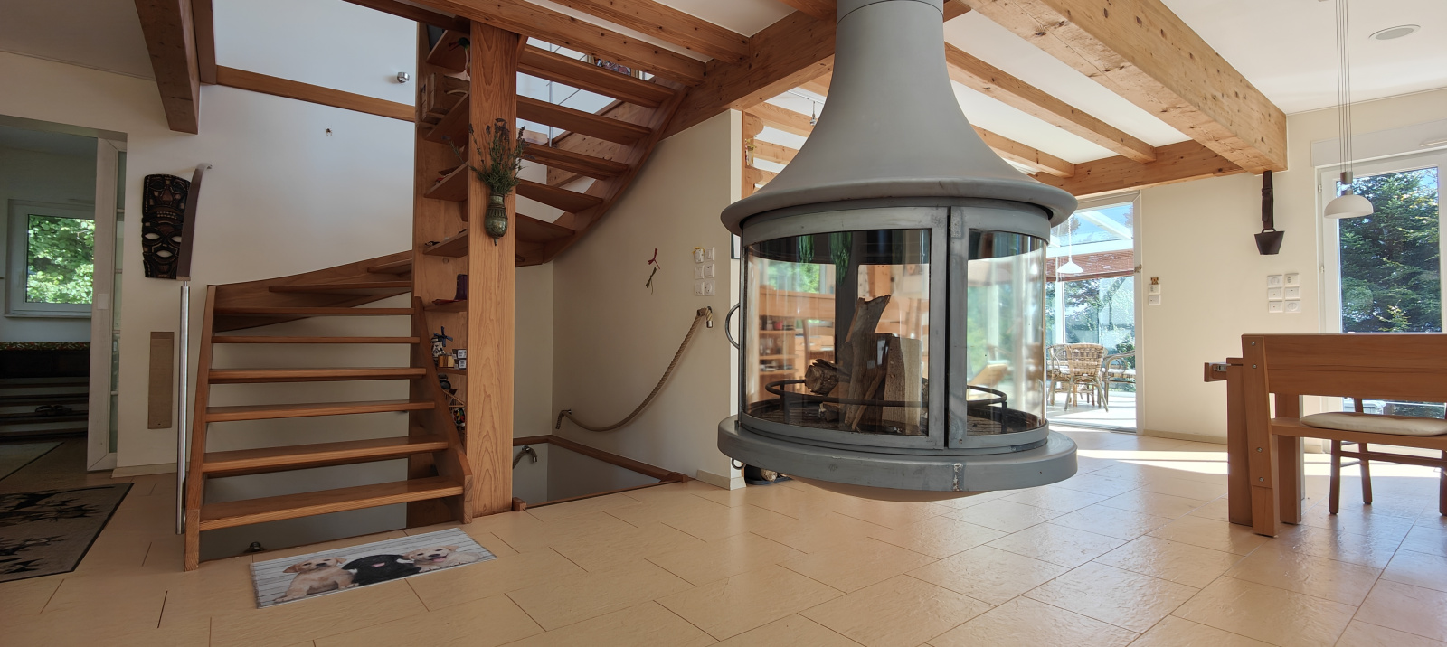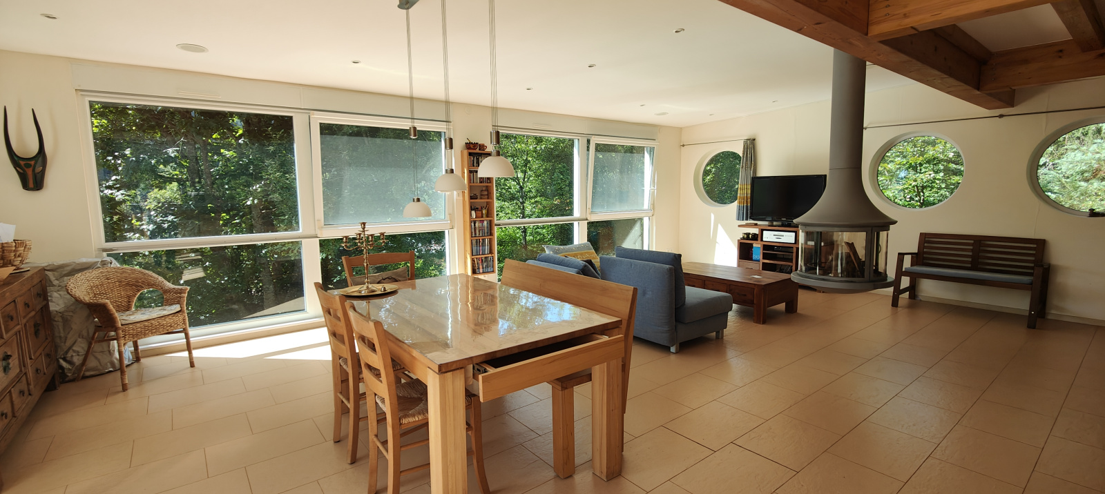 La maison est desservie par un chauffage électrique au sol. Pour parfaire l'atmosphère, le salon est agrémenté d'une cheminée suspendue au bois, elle apporte une touche de design et une source de chaleur supplémentaire. La pièce de vie est complétée par une magnifique véranda de 16 m² environ, chauffée également par le sol, véritable jardin d'hiver, et donne accès à un balcon de 8 m². Ce dernier, baigné de soleil, est également accessible depuis le salon et offre un espace extérieur privilégié pour profiter de la vue.