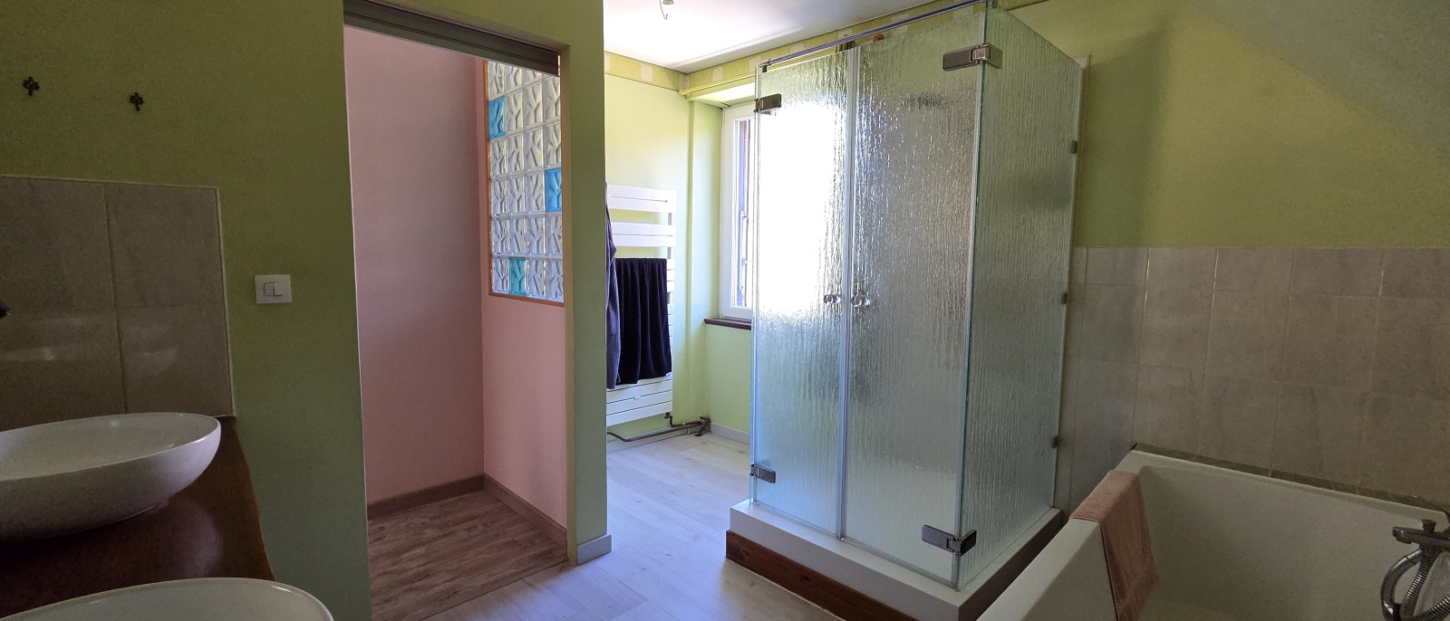 À l'étage, l'espace nuit se compose de trois chambres de belle taille, d'une vaste salle de bain soigneusement équipée, d'un toilette indépendant et d'un débarras pratique.