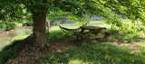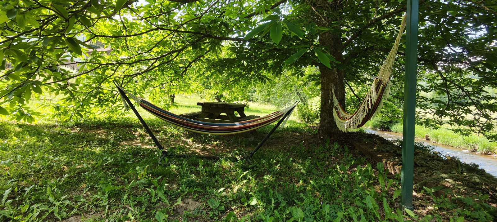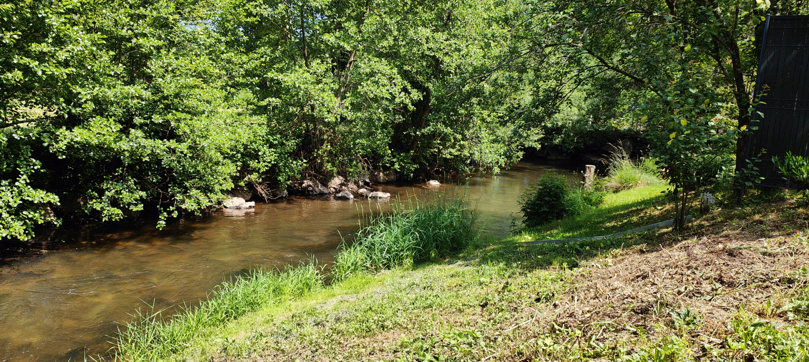 A l'extérieur, en plus de cette généreuse terrasse, vous pourrez profitez de vos espaces verts, plats et situés en bordure de l'eau. Vous y trouverez des arbres fruitiers et pourrez vous relaxer à l'ombre sous un magnifique châtaignier.