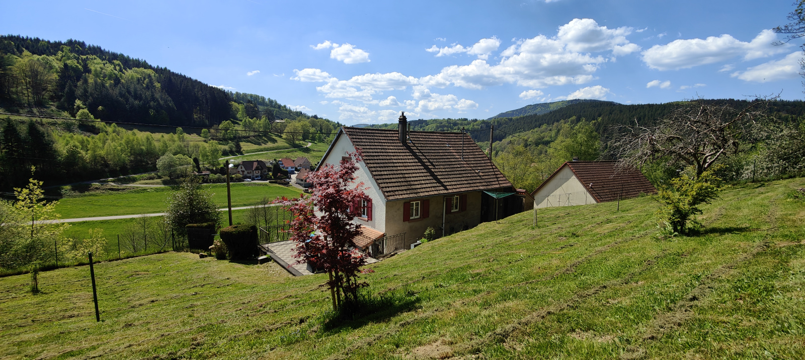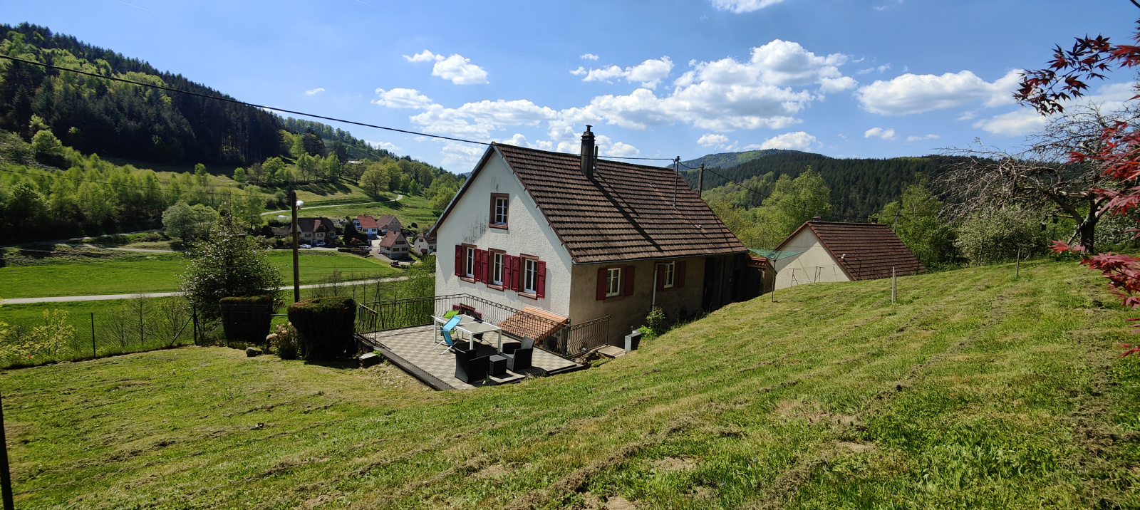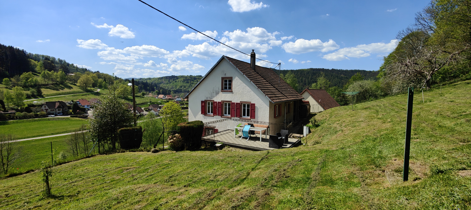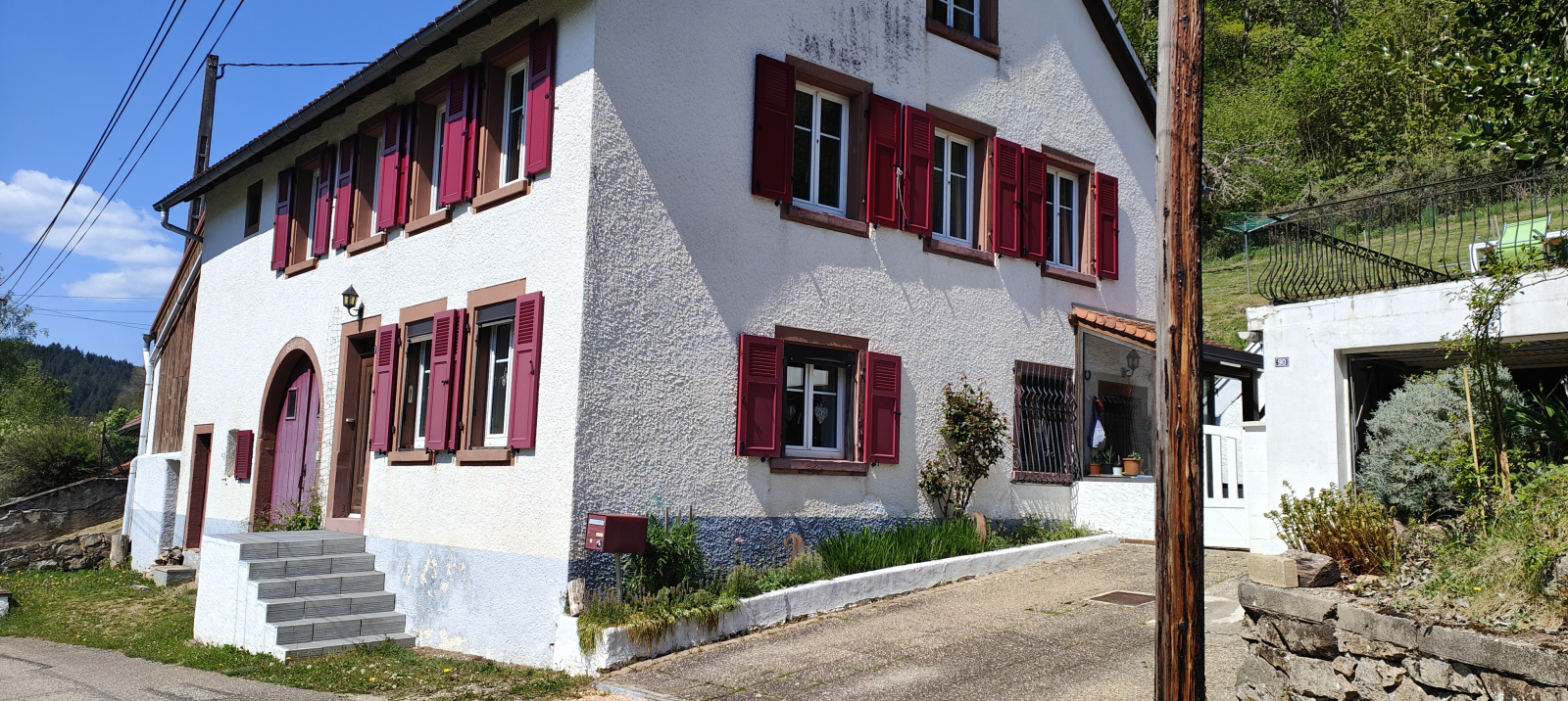 Côté extérieur, cette propriété ne manque pas d'atouts ! Vous bénéficierez de deux places de stationnement privatives ainsi que d'un garage. Au-dessus de ce dernier, une très agréable terrasse vous attend, offrant une vue imprenable et dominante sur le village, jouissant d'un ensoleillement idéal. Le reste du terrain est un écrin de verdure agrémenté de quelques arbres fruitiers. Entièrement clôturée pour votre tranquillité, la propriété dispose également d'un portillon vous offrant un accès immédiat à la forêt, située à seulement quelques pas.