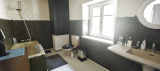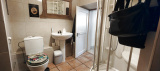 A l'étage, une salle de bain avec toilettes et trois chambres.