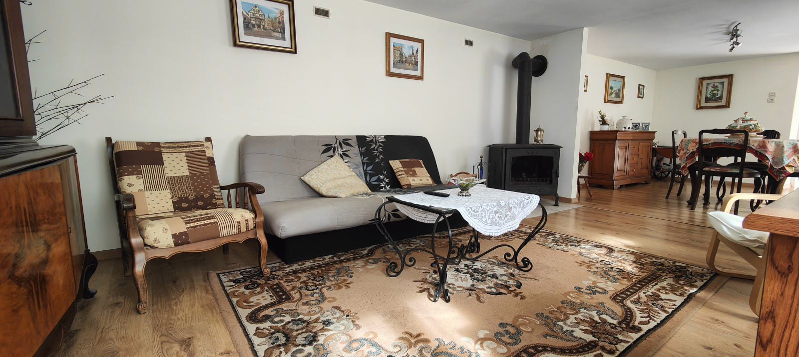 Le chauffage fonctionne principalement par un poêle à bois dans la pièce de vie. Des prises sont prévues pour installer des convecteurs électriques.