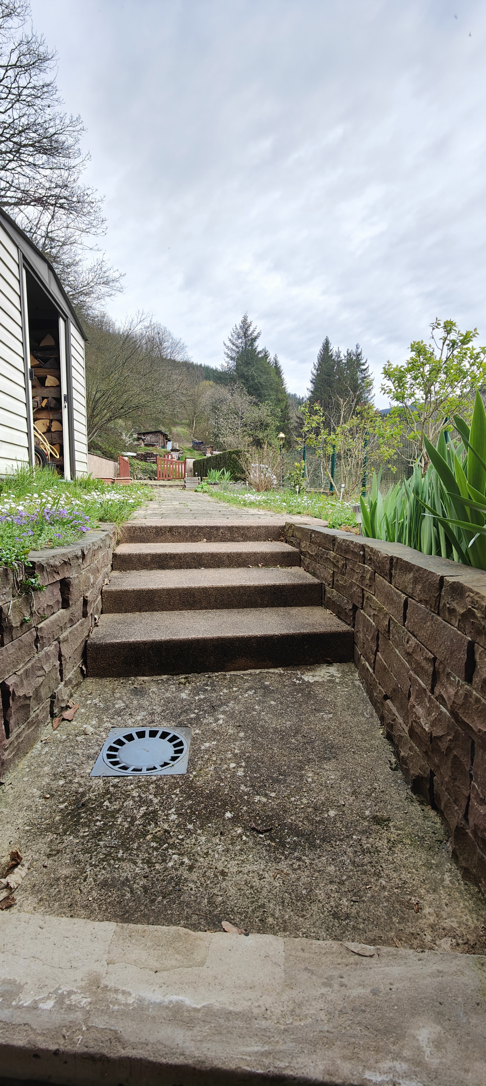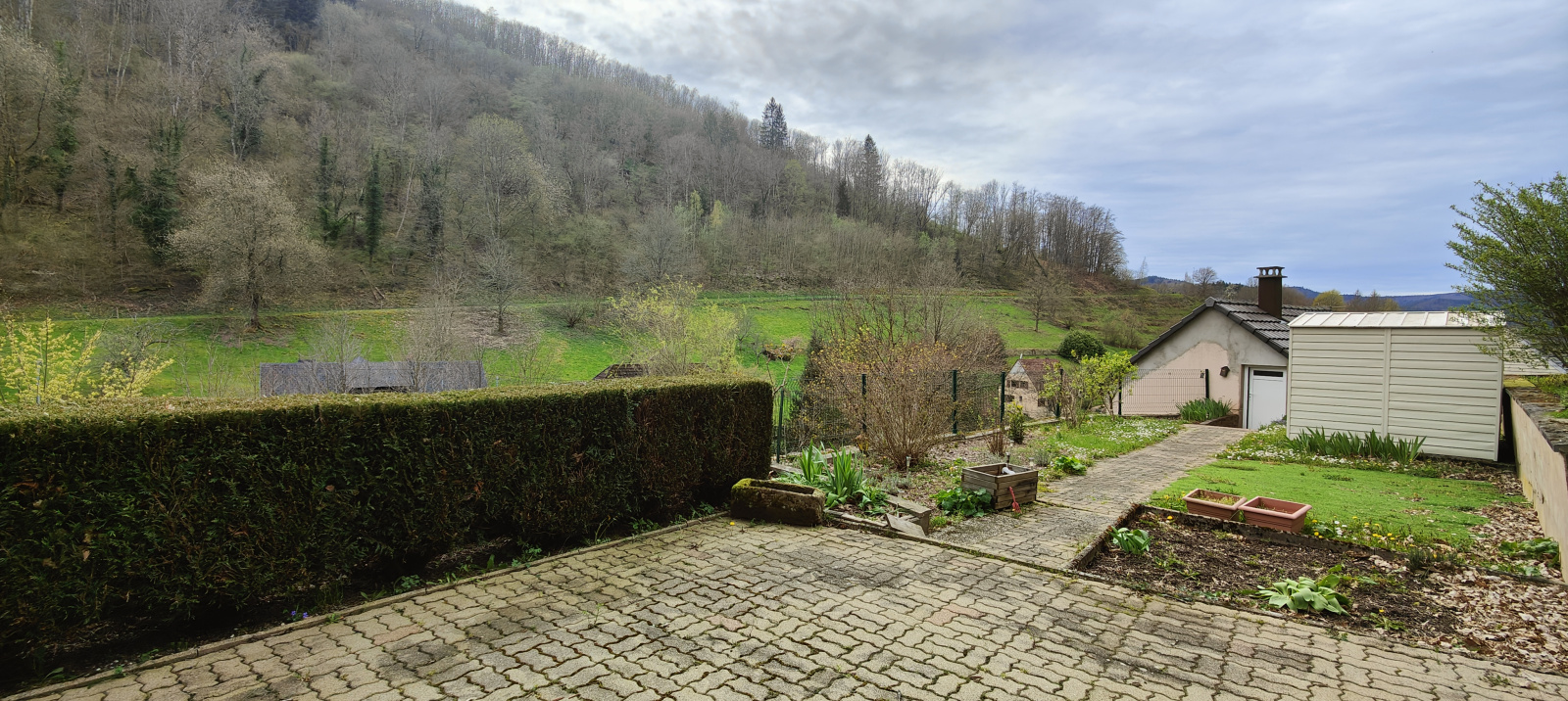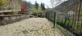 A l'extérieur, un joli espace exposé Est vous permettra de profiter de cette agréable vue sur le village et les chemins de forêt et de cette situation très calme. Puis, en face de la propriété, vous disposez également d'une terrasse, d'un espace vert aménagé d'arbres fruitiers et d'arbustes fleuris, idéal pour installer votre potager.