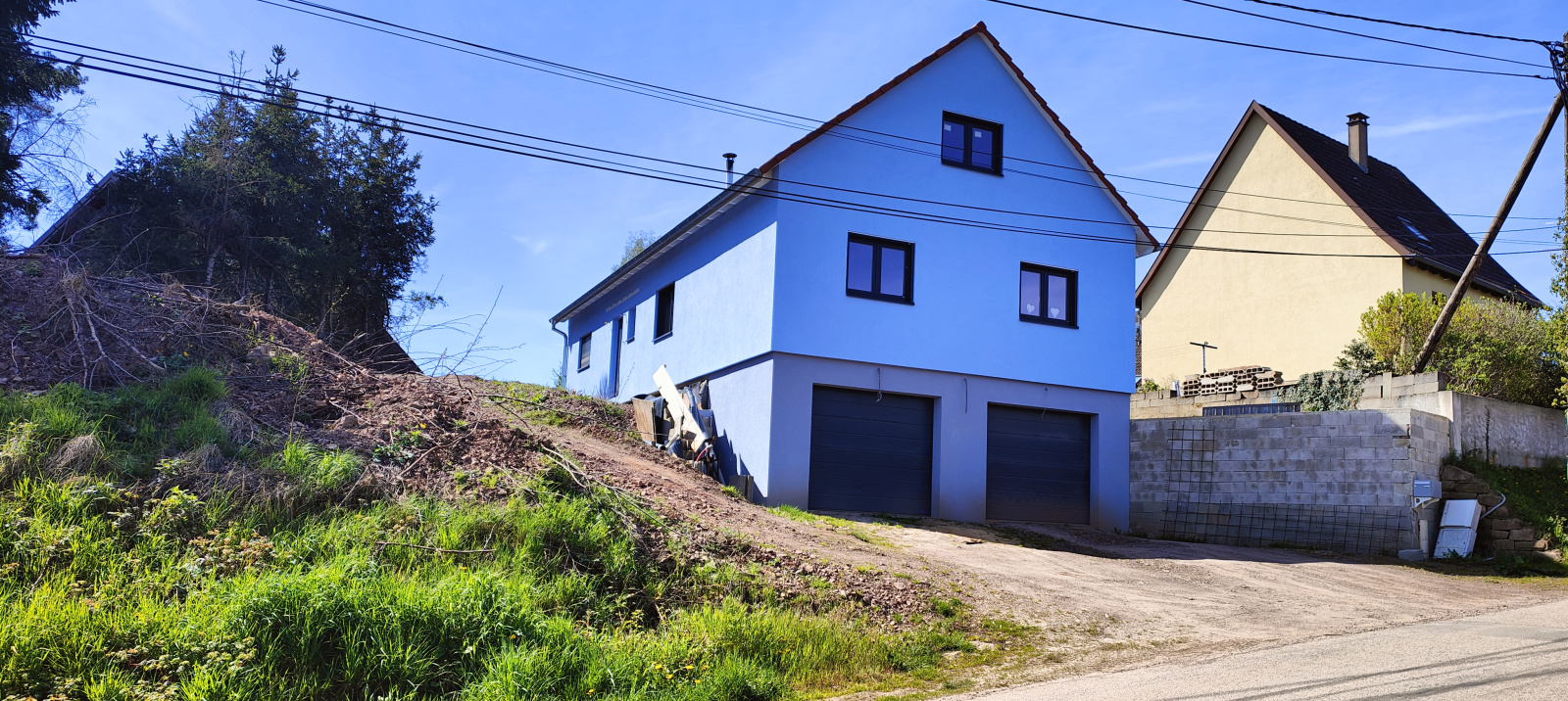 A l'extérieur, l'aménagement reste à prévoir en totalité. Des places de stationnement sont possibles à l'avant de la propriété puis un accès à l'entrée et des espaces verts seront à créer selon vos envies et votre esprit créatif.