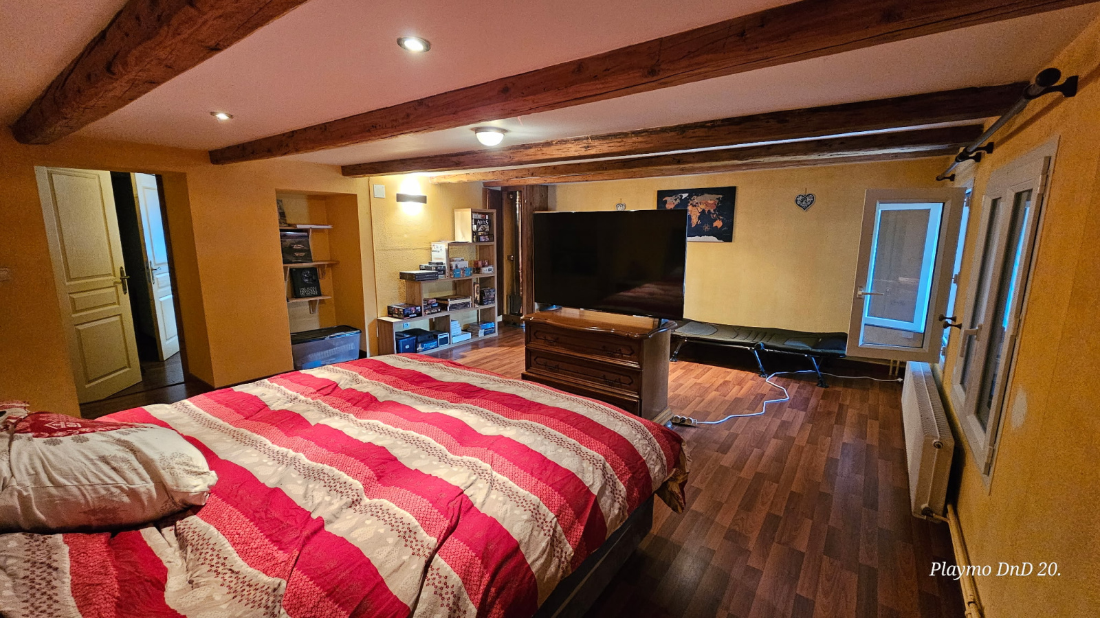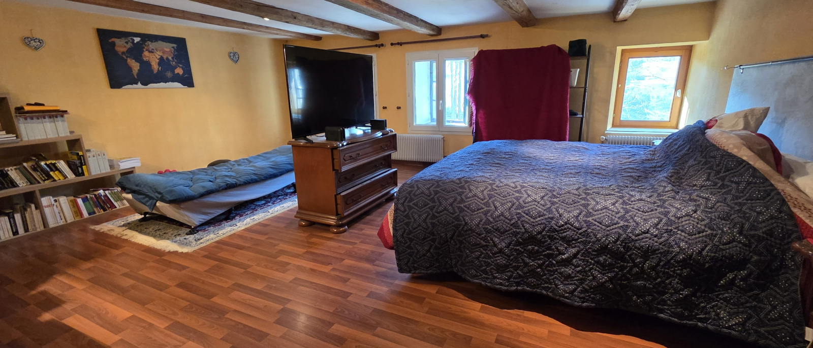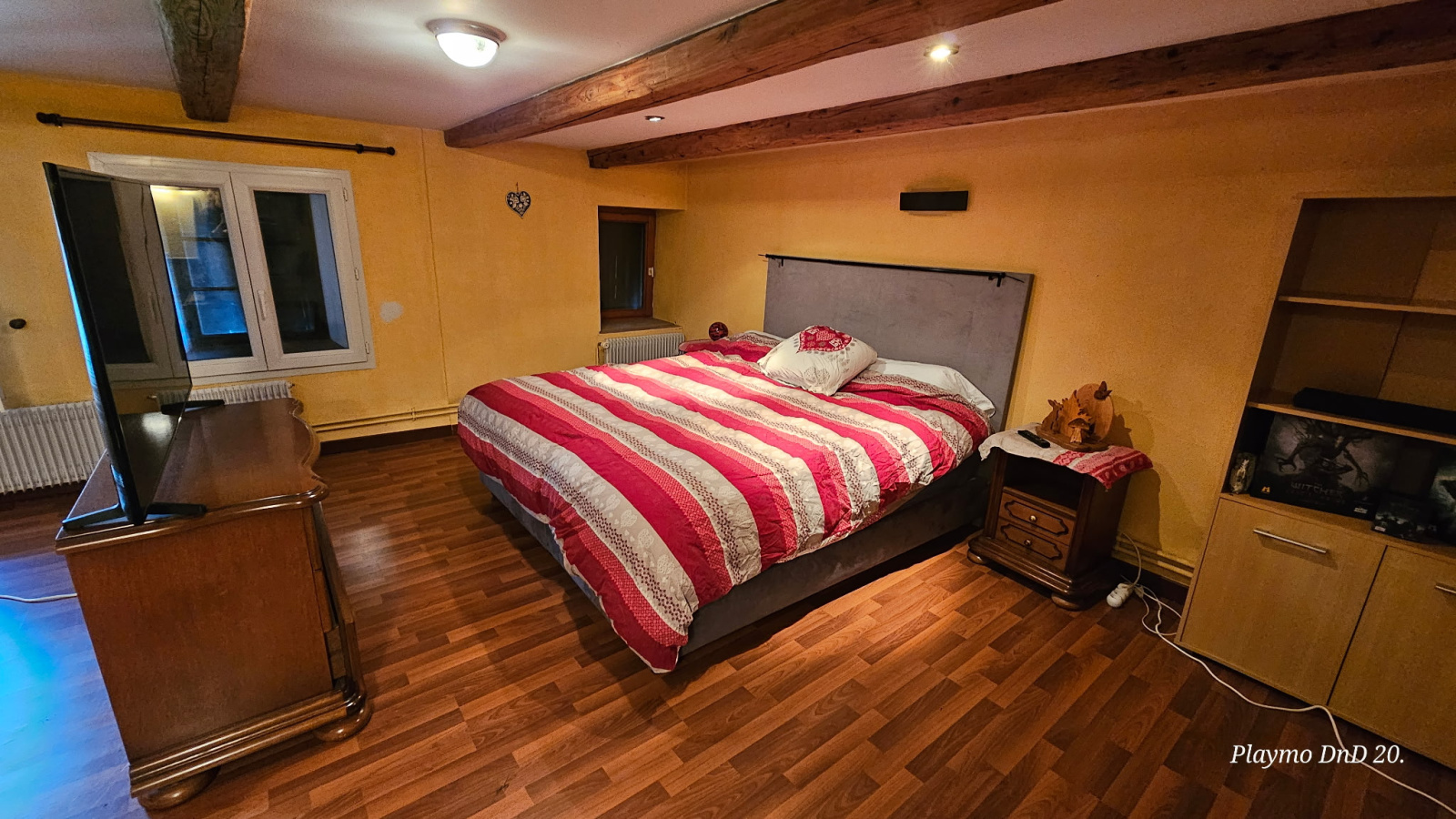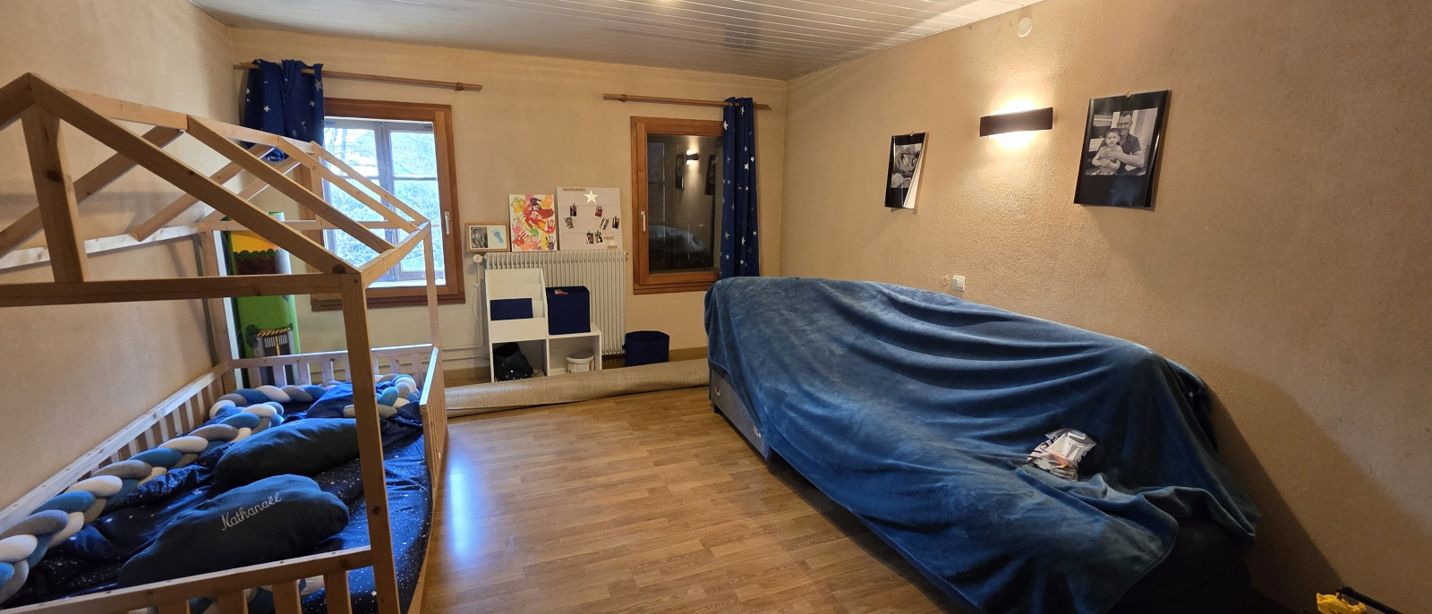 A l'étage, vous trouverez quatre chambres très spacieuses, chacune offrant un confort optimal pour une grande famille. Egalement, une salle de bain, des toilettes séparés et un grand dégagement aménageable en bureau, salle de jeux ou espace détente.