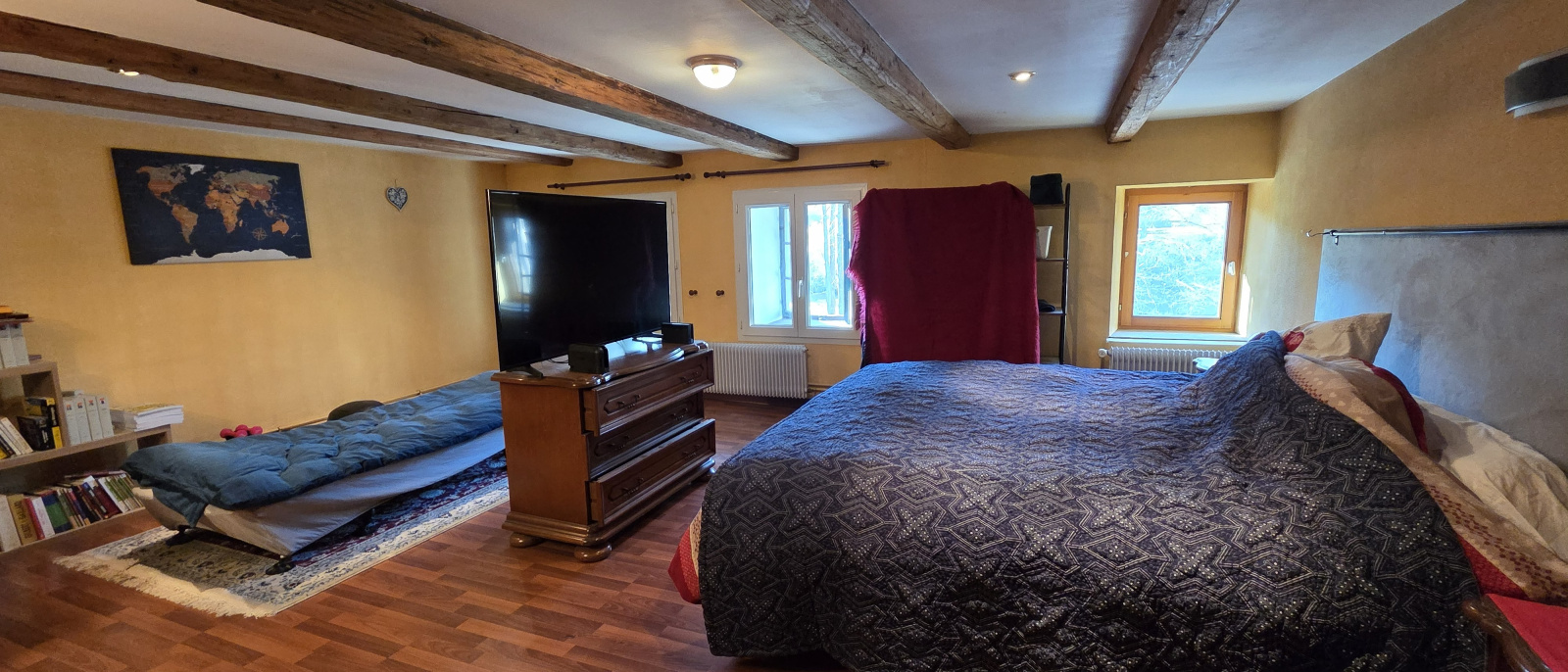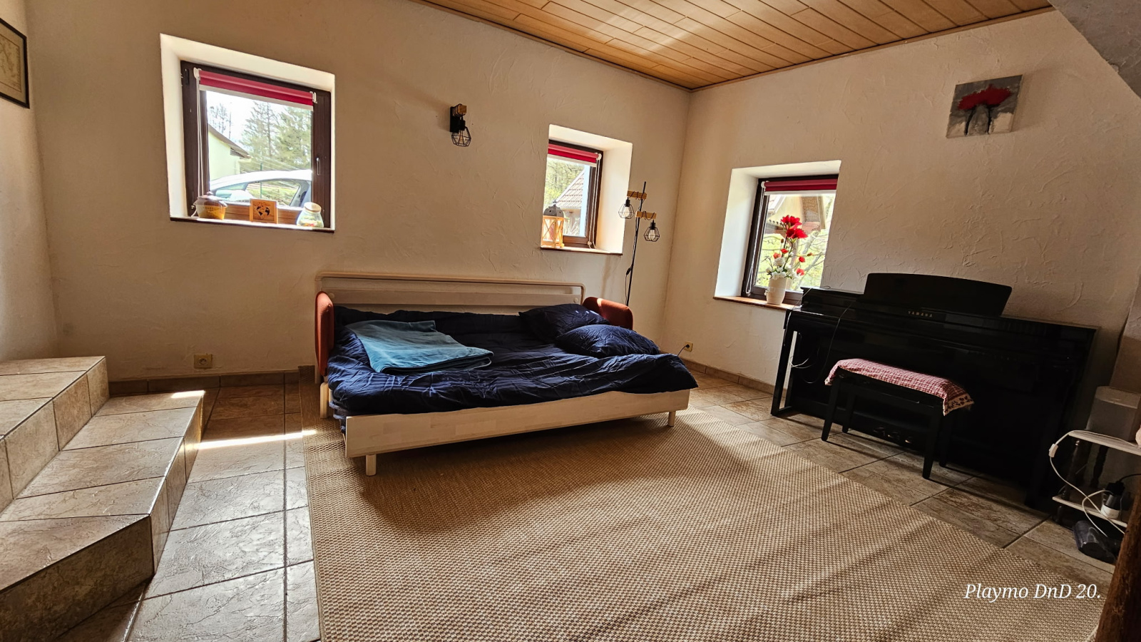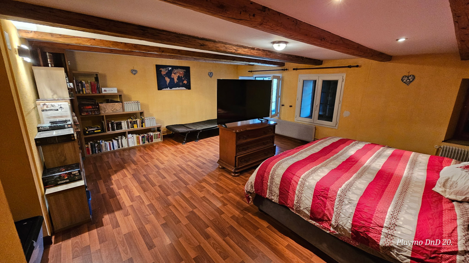 A l'étage, vous trouverez quatre chambres très spacieuses, chacune offrant un confort optimal pour une grande famille. Egalement, une salle de bain, des toilettes séparés et un grand dégagement aménageable en bureau, salle de jeux ou espace détente.