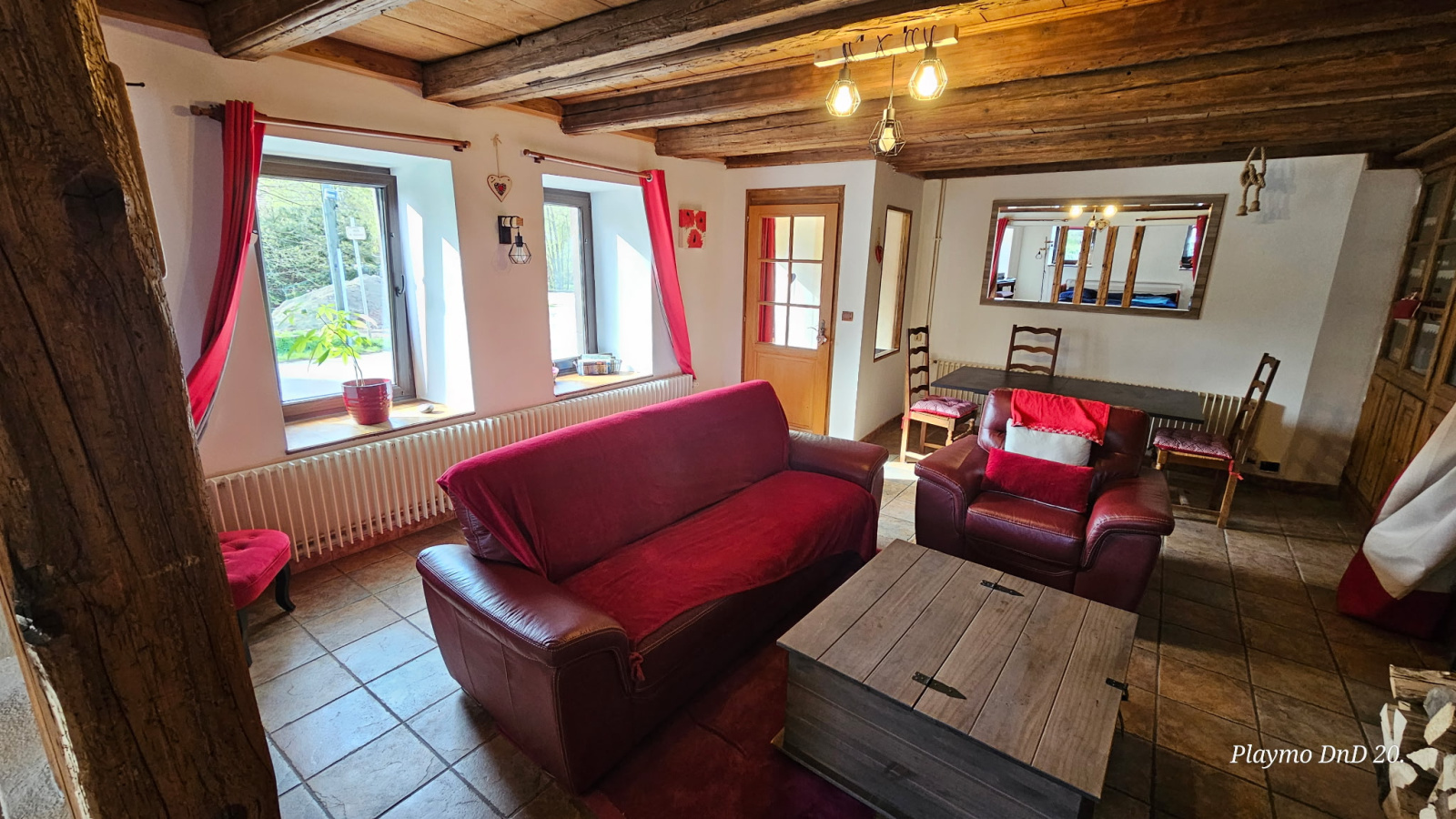 A Plaine, précisément à Champenay, lieu-dit paisible, voici cette maison ancienne de caractère entièrement rénovée il y a une vingtaine d’années.