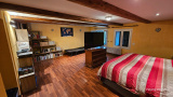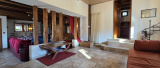La maison offre de généreux volumes, sublimée par de jolis parquets et des poutres apparentes créant une atmosphère chaleureuse et élégante dès l’entrée.