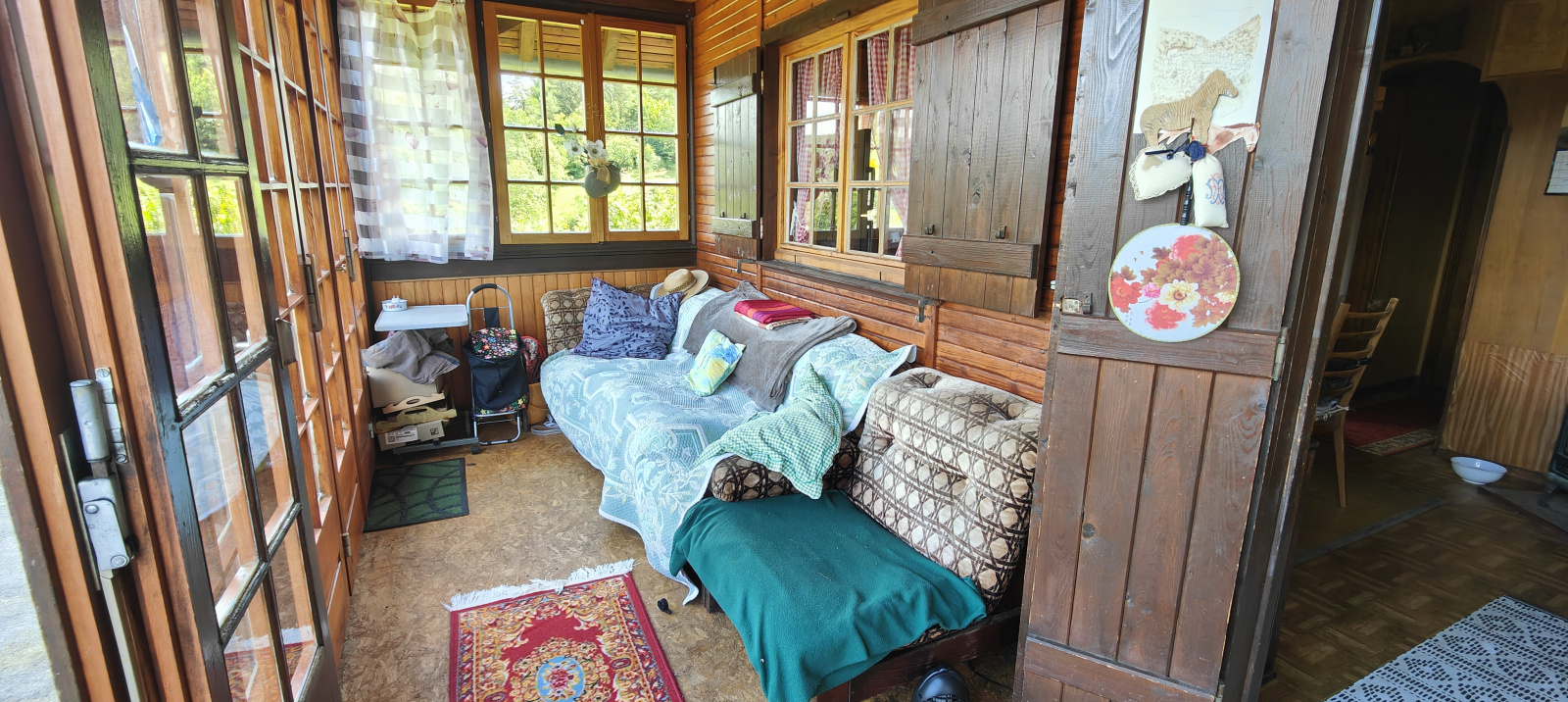 La partie habitable est agencée sur deux niveaux. Au premier niveau vous trouverez un salon et salle à manger, un espace cuisine, une chambre, une salle d'eau et un toilette. Puis, une véranda d'environ 15 m² vous donne accès à votre balcon et vous émerveillera par sa vue époustouflante sur les forêts avoisinantes et le village d'en face.