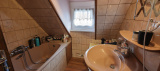 A l'étage, deux chambres, une petite salle de bain pouvant être agrandie grâce à l'espace grenier qui jouxte cette pièce. Des possibilités de réagencement et d'agrandissement s'offrent à vous.