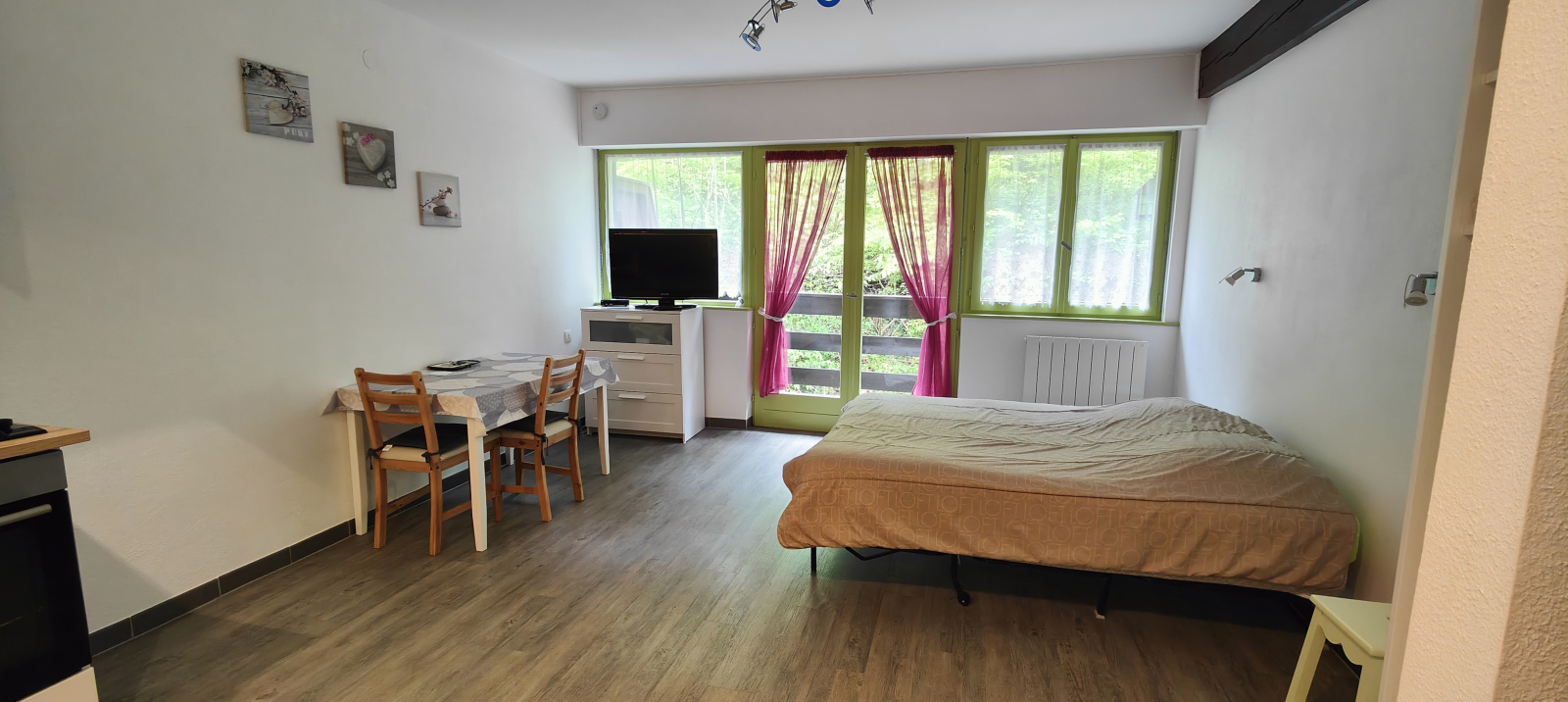 Au Hohwald, en retrait du centre-village, dans une petite résidence de 1975 bordée par l'Andlau, anciennement une scierie, au rez-de-chaussée, voici ce studio de 26.81 m².