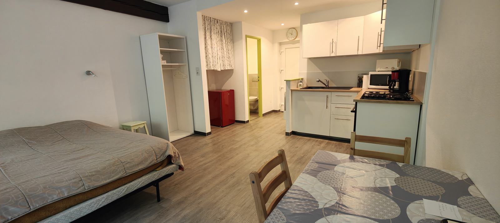 En parfait état, il a connu une rénovation totale en 2016. Il dispose d'une salle d'eau équipée, d'un toilette séparé puis d'un grand espace de vie d'environ 21 m² avec une agréable cuisine équipée. Ce bel espace vous donne accès au balcon, donnant sur l'arrière de la copropriété et sur le cours d'eau.