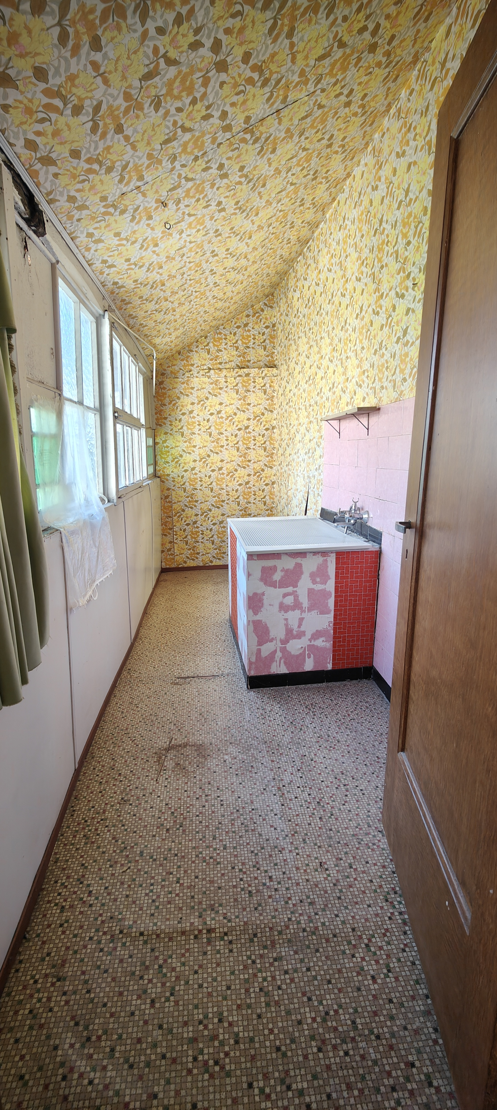 Cette maison demande des travaux de rénovation importants : l'isolation des murs et de la toiture, la mise aux normes de l'installation électrique, le changement des fenêtres et la création d'une salle de bain puis un rafraichissement général.