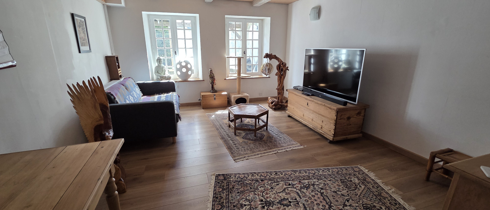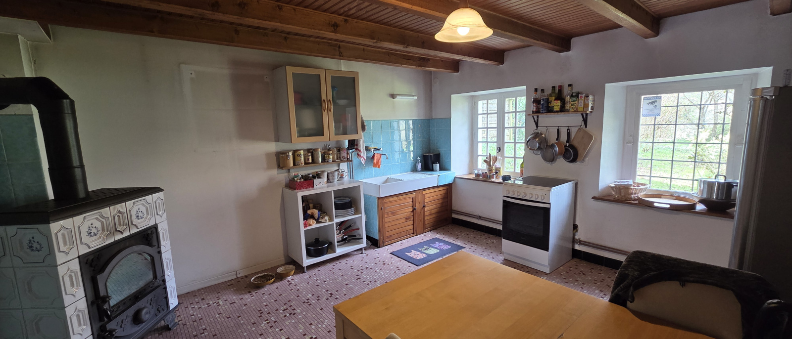 La maison est saine et entretenue : la charpente est en parfait état et la couverture a été partiellement rénovée dans les années 2000. Côté confort, elle bénéficie d'un système de chauffage performant installé en 2012 avec une chaudière à pellets alimentant les deux logements, complétée par un impressionnant poêle de masse de 100 kW au centre de l'habitation principale et des panneaux solaires pour la production d’eau chaude. L'électricité a été modernisée en 2012 et l'assainissement par fosse septique a été remis aux normes en 2017. L'isolation est assurée par des murs en pierre épais et une isolation en laine de bois au sol du grenier.