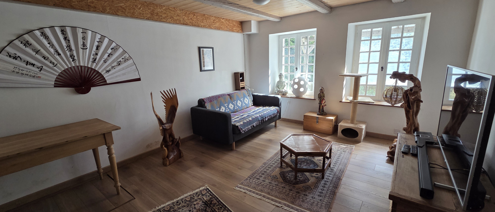 La bâtisse se compose de deux habitations communicantes par l'intérieur, tout en disposant chacune d'une entrée indépendante, offrant ainsi une flexibilité rare : projet touristique (gîte ou chambres d'hôtes), vie bi-famille ou grande demeure familiale.