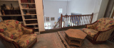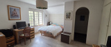 À l’étage, une élégante mezzanine dessert quatre grandes chambres, dont une avec salle de bain privative et une autre avec point d’eau, ainsi qu’une salle de bain supplémentaire et un toilette.
