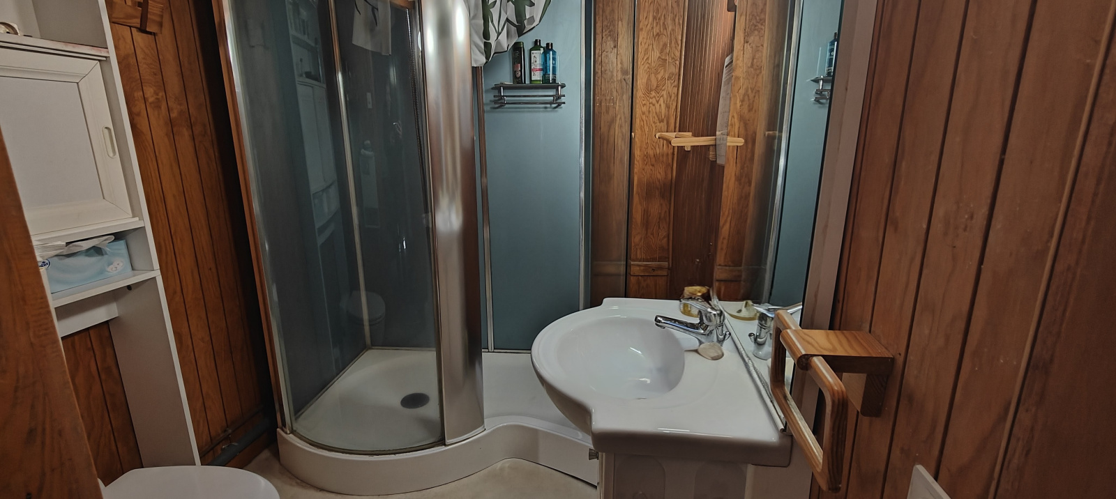 À l'étage, l'espace nuit se compose actuellement de quatre chambres spacieuses et d'une salle d'eau. Bien que la structure soit saine, cette propriété de 132 m² nécessite un projet de rénovation totale pour retrouver son éclat d'antan. Il faudra ainsi prévoir l'installation de doubles vitrages, une isolation complète, la mise aux normes de l'électricité, le remplacement du chauffage au fuel ainsi que le remplacement complet de la couverture. La bâtisse est raccordée au tout à l'égoût.