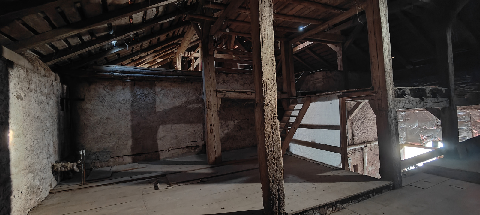 C'est ici que réside tout le potentiel de cette bâtisse : l'ancienne grange, qui abrite actuellement un espace garage, l'étable attenante et l'immense grenier offrent des volumes hors normes qui ne demandent qu'à être réinterprétés. Sous une charpente saine, ces espaces constituent une opportunité rare de créer une surface habitable supplémentaire considérable, permettant d'agrandir l'espace de vie actuel selon vos projets les plus ambitieux.