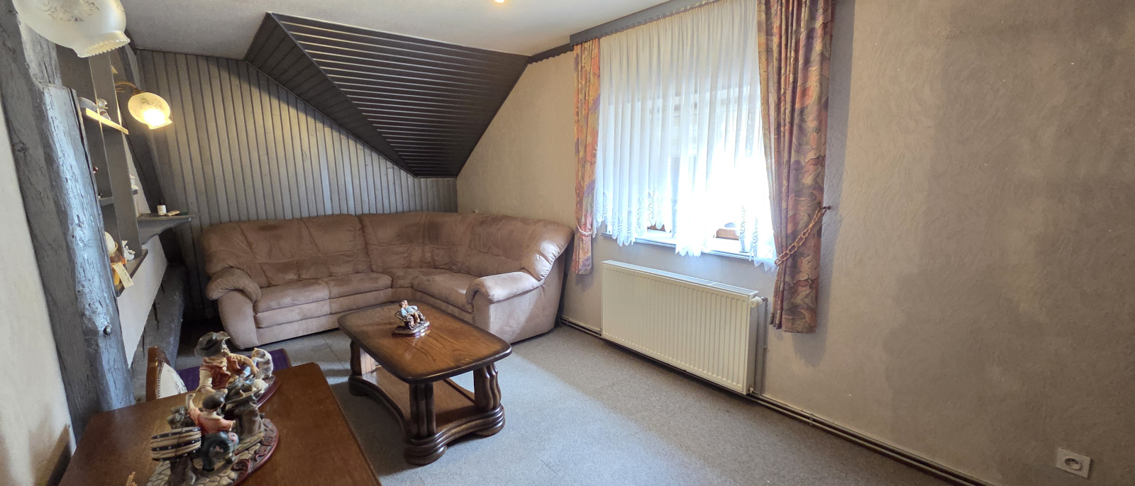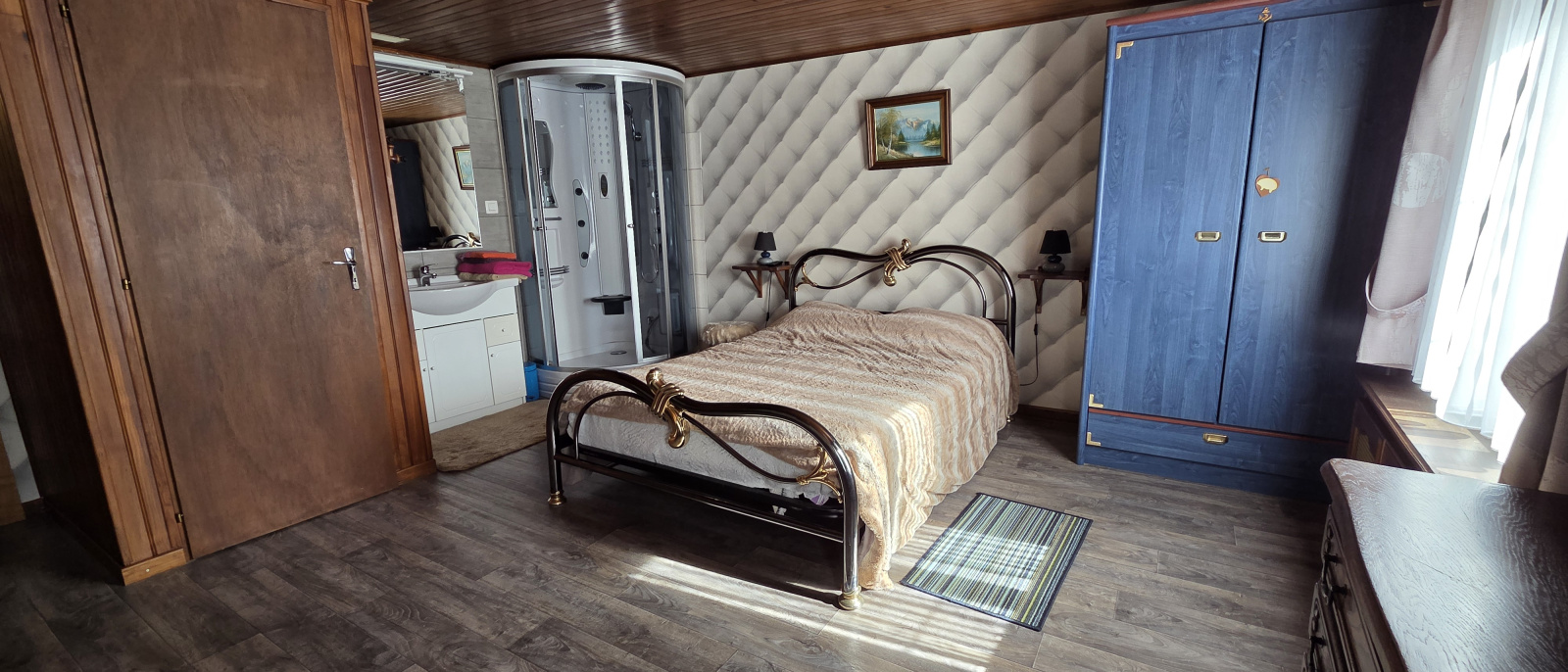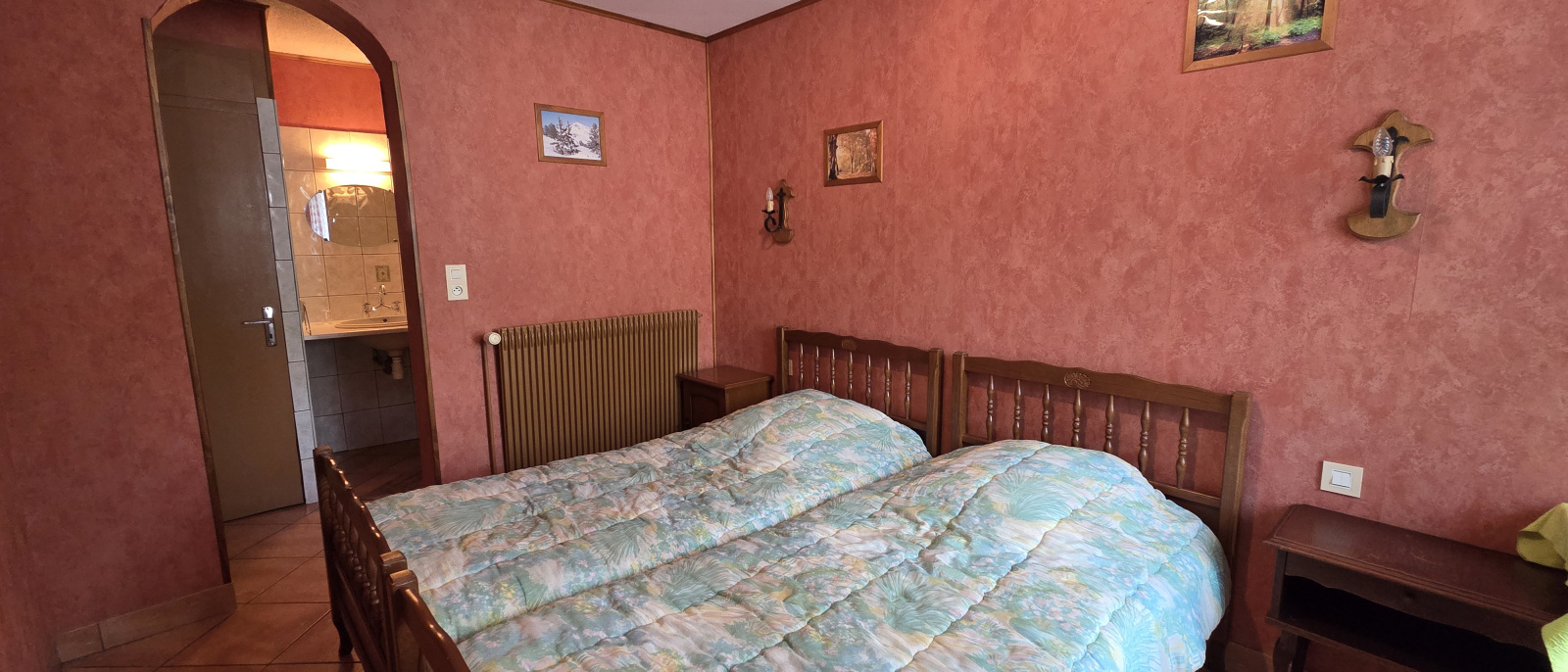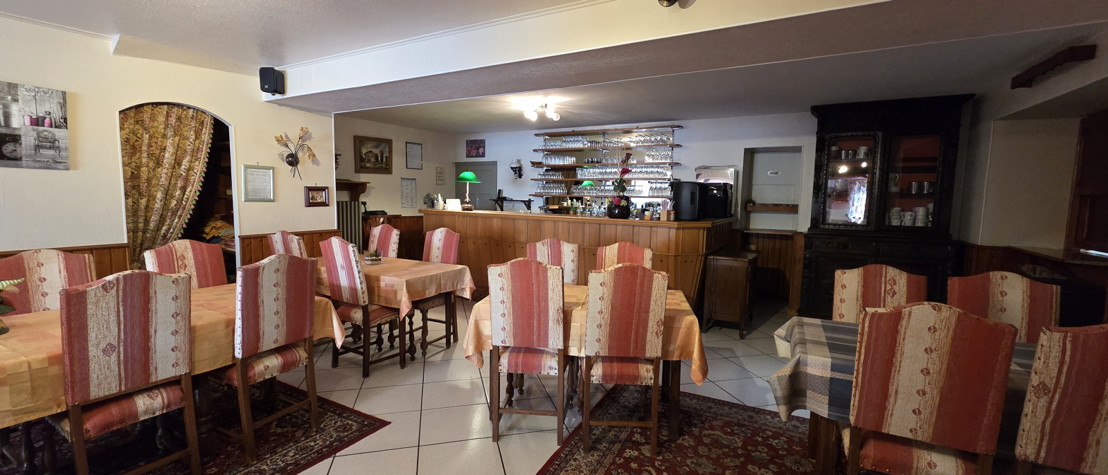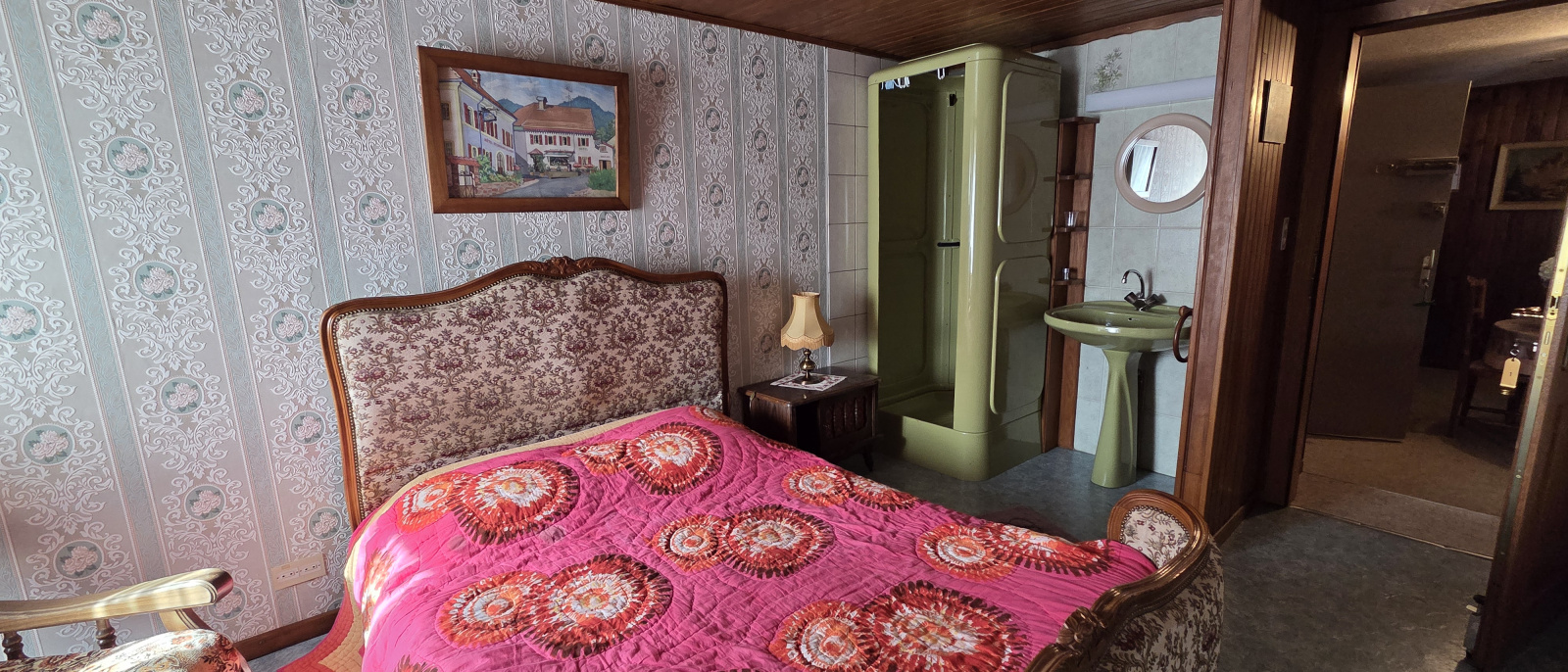 À l'étage, l'espace actuellement dédié à l'hôtellerie propose sept chambres qui, bien que demandant une modernisation pour être remises au goût du jour, révèlent un potentiel touristique majeur. Grâce à la proximité immédiate du Lac de Pierre-Percée et des sentiers de randonnée du Donon, cet étage peut aisément être transformé en chambres d'hôtes ou en appartements de location saisonnière.