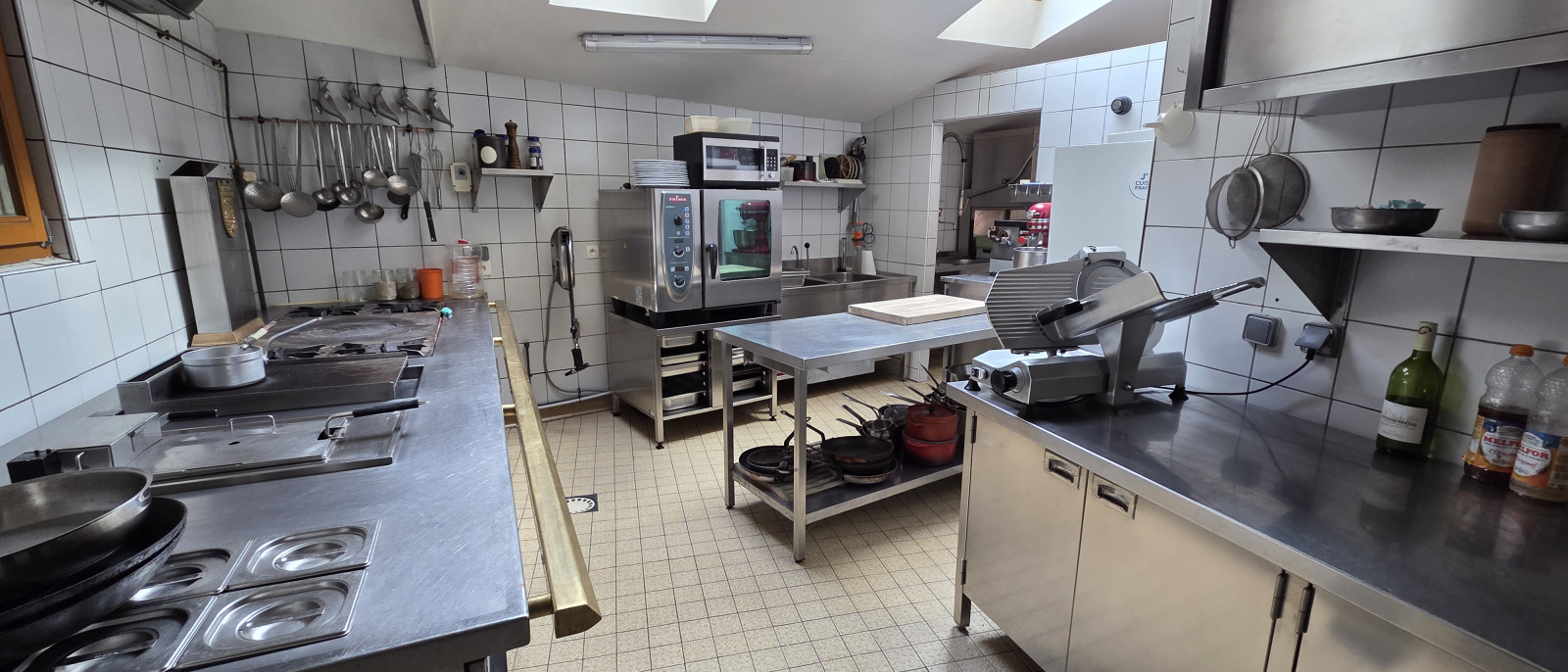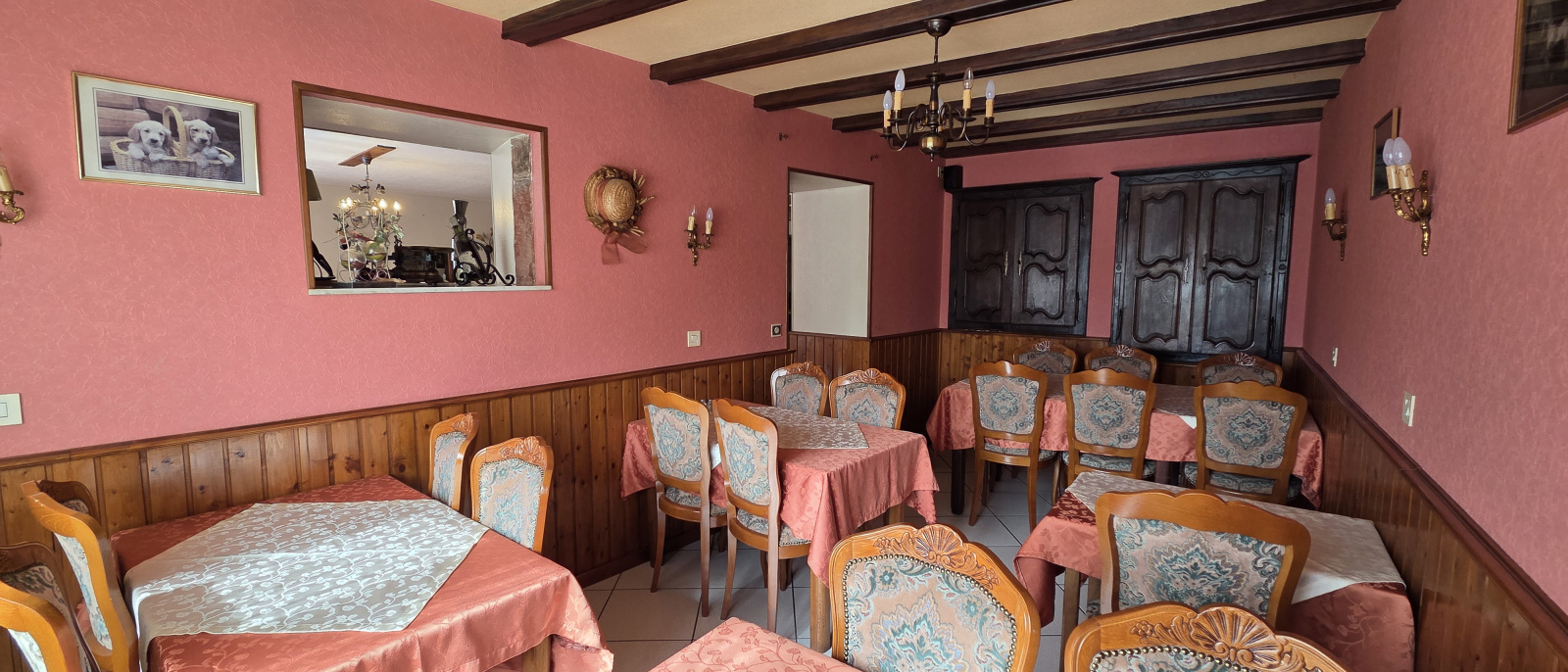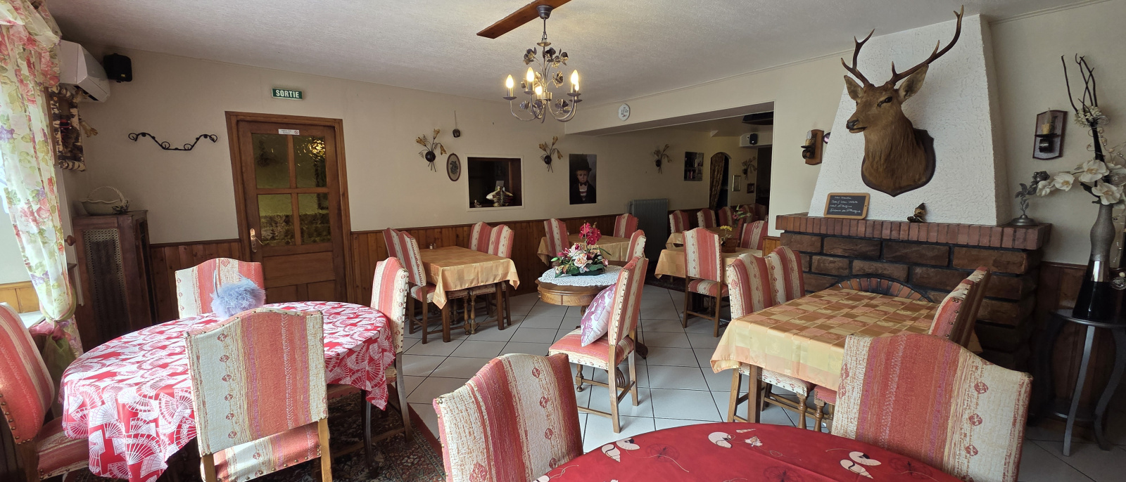 Le rez-de-chaussée abrite un restaurant de 50 couverts environ, climatisé et entièrement équipé, vendu avec son fonds de commerce, son mobilier et sa Licence IV. Ce lieu convivial, qui a fait le bonheur des clients jusqu'au départ en retraite des anciens exploitants, dispose de tous les espaces logistiques nécessaires, incluant une cuisine fonctionnelle, un espace de stockage, un garde-manger, des toilettes, une buanderie, un atelier, la chaufferie et une superbe cave voûtée.