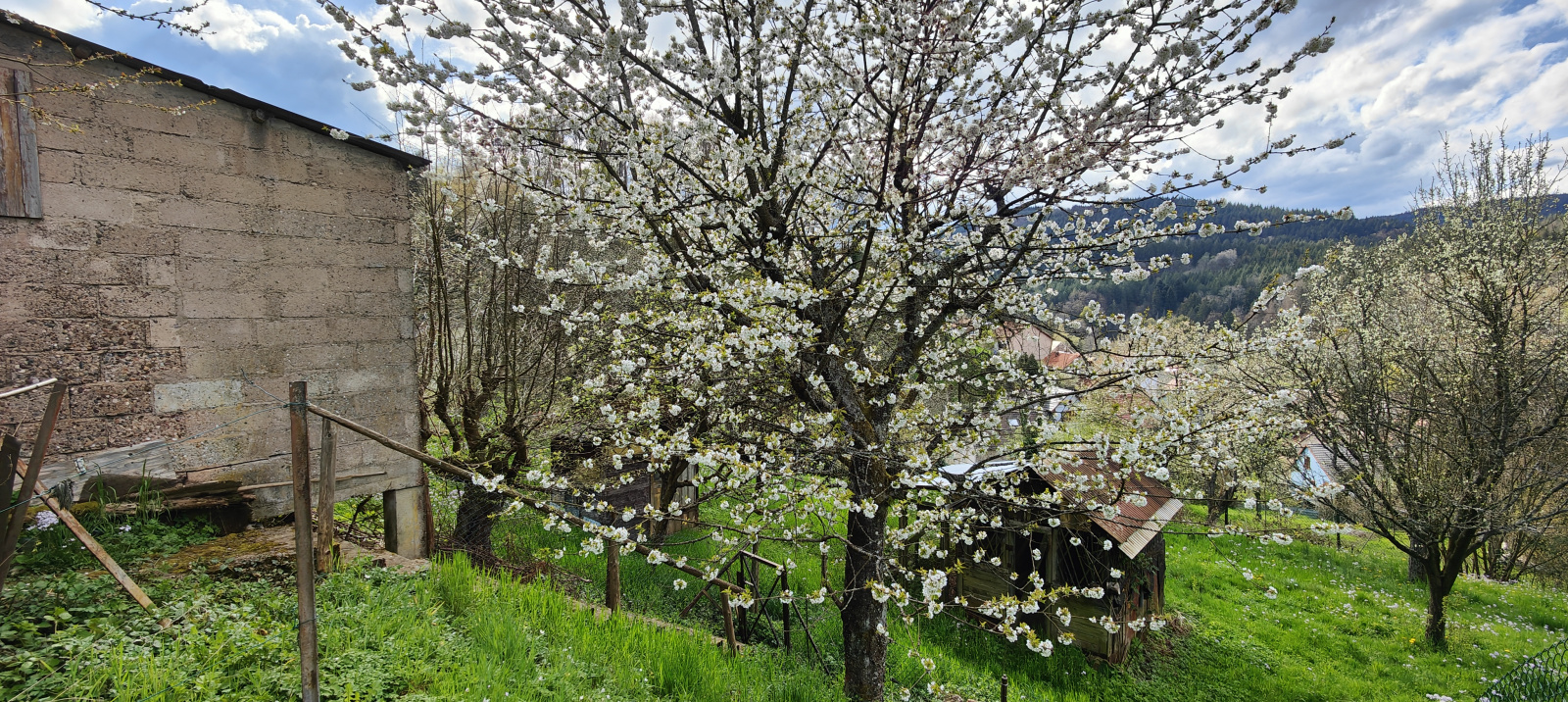 L'extérieur fera votre bonheur grâce à l'ensemble du terrain représentant 14.32 ares. Vous y trouverez essentiellement un vaste espace verger avec ses différents arbres fruitiers (pommier, poirier, prunier, cerisier...) et un ancien poulailler. Aussi, un espace potager très agréable.
