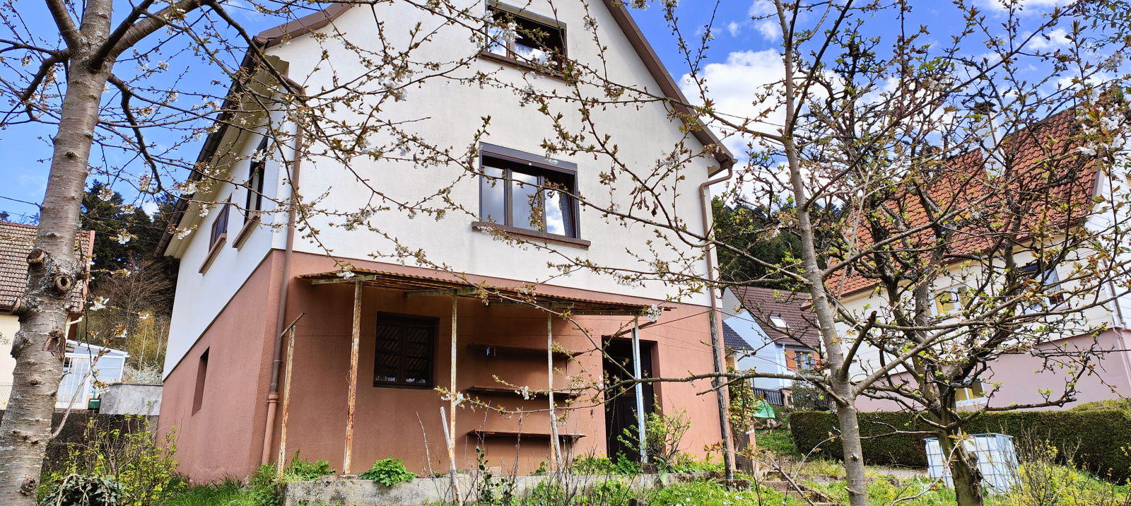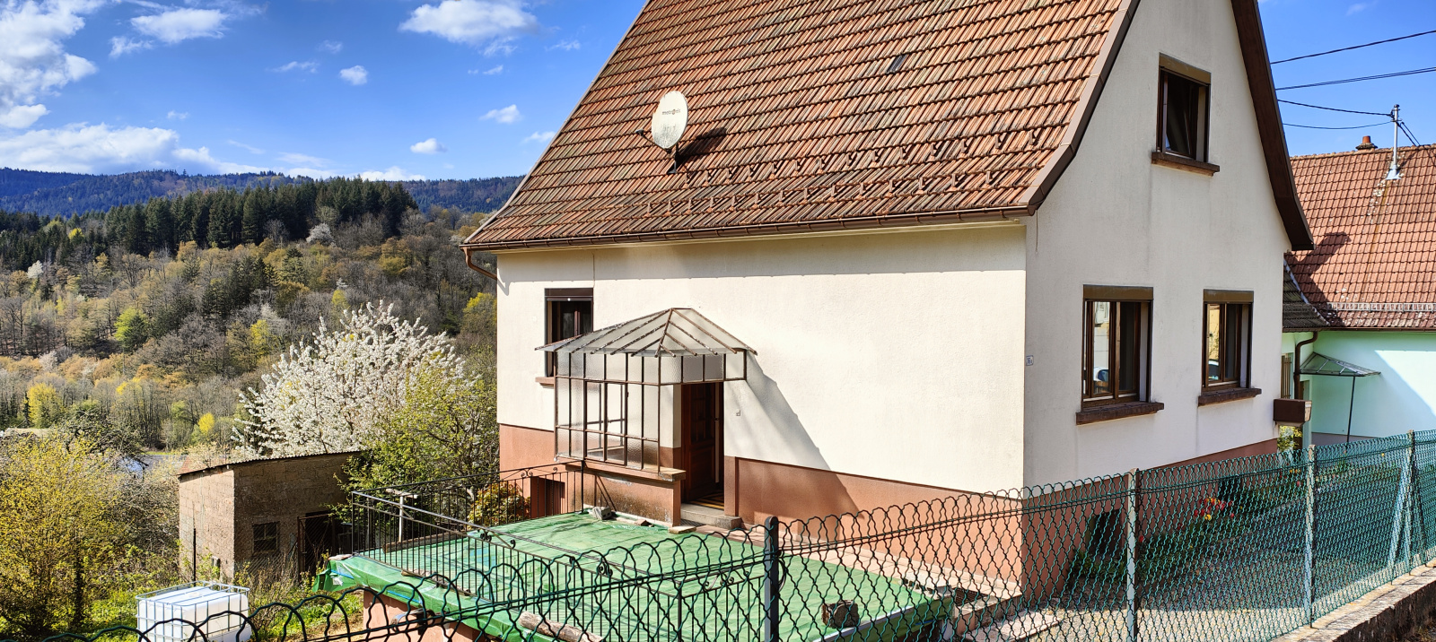 Retrouvez à Rothau, dans cette rue en impasse, sur les hauteurs du village, en position dominante, cette maison construite à la fin des années 1950.