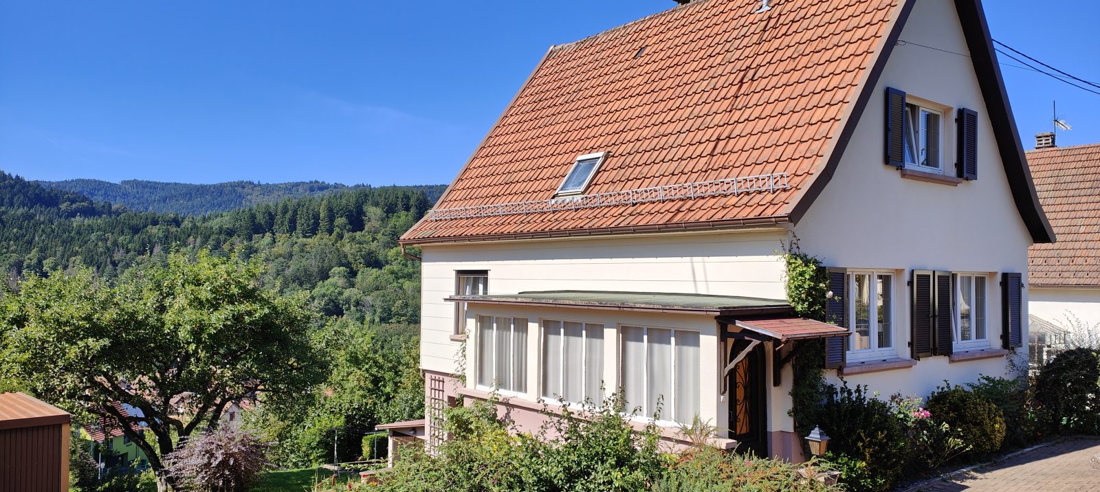 Voici à Rothau, dans une rue en impasse qui aboutit aux chemins de forêt, sur les hauteurs du village, en position dominante, cette maison construite en 1957 sur un terrain de 6.80 ares.