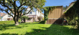 A l'extérieur, vous disposez d'un bel espace vert, vous trouverez des arbres fruitiers et pourrez aisément réexploiter l'ancien potager tout en profitant de ce cadre magnifique. Ces espaces extérieurs sont régulièrement et joliment entretenus.