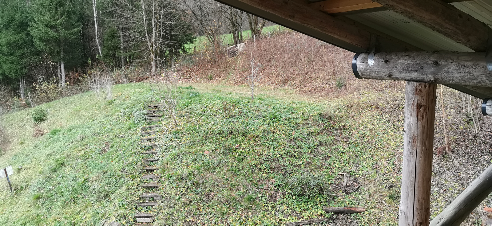 De plus, à l'extérieur vous disposez d'un étang, prévu pour une réserve en cas d'incendie. L'ensemble du terrain en pente dispose de plusieurs paliers.