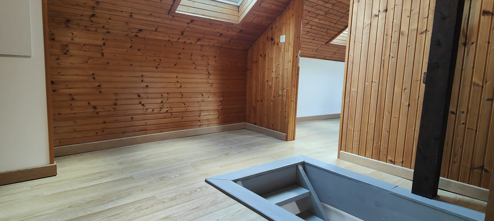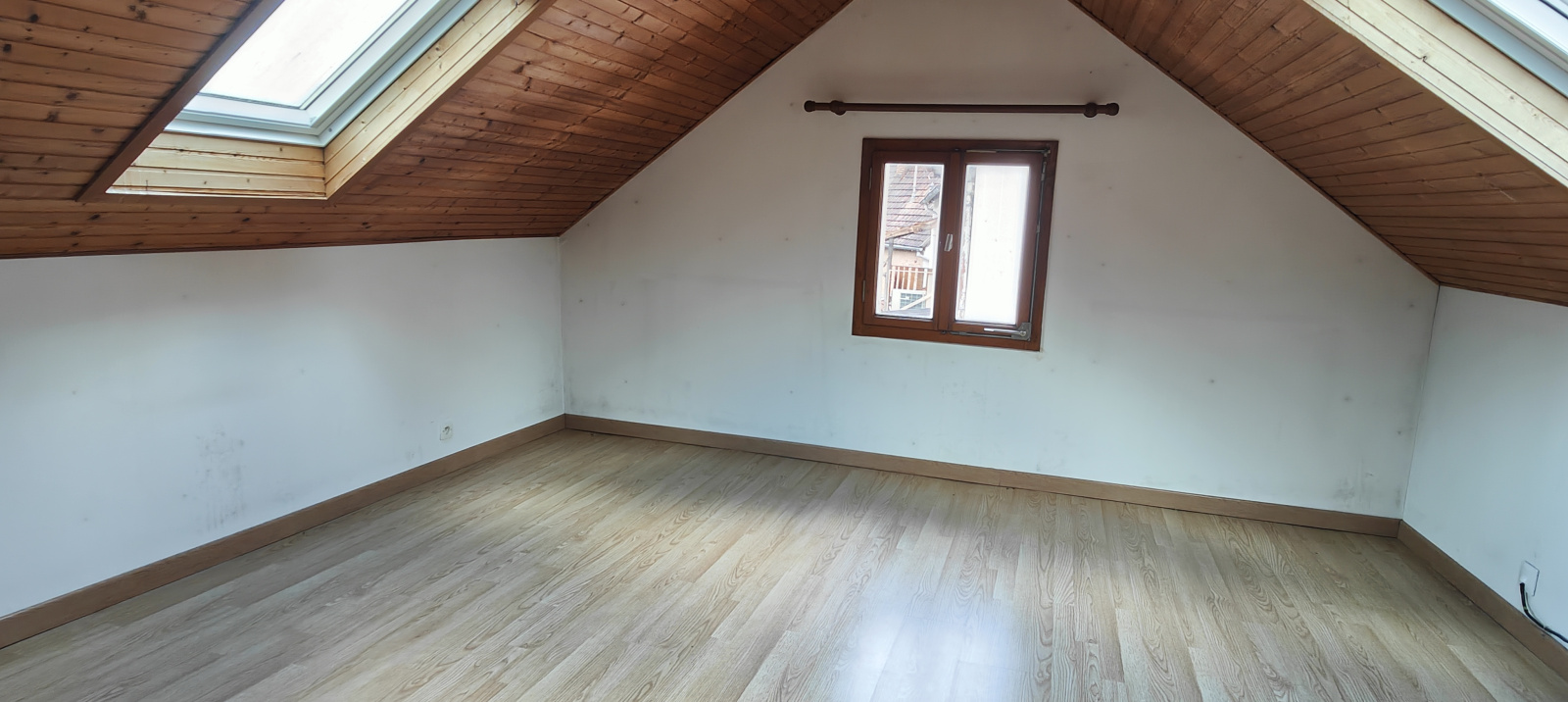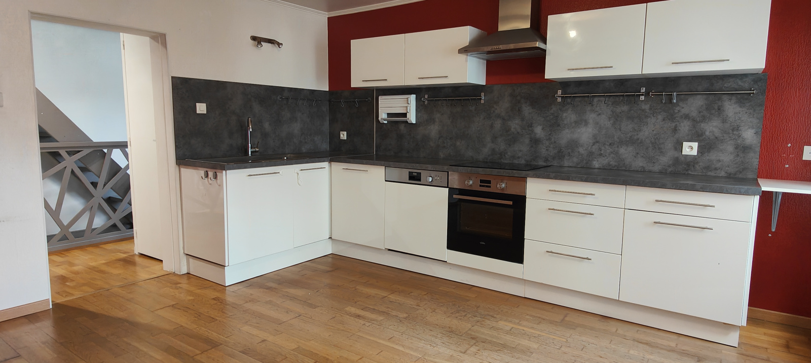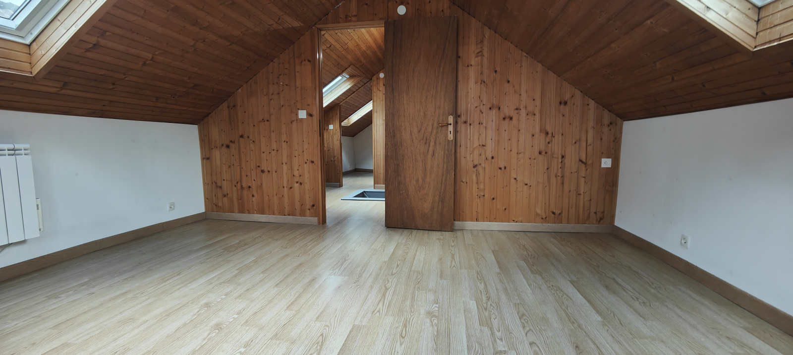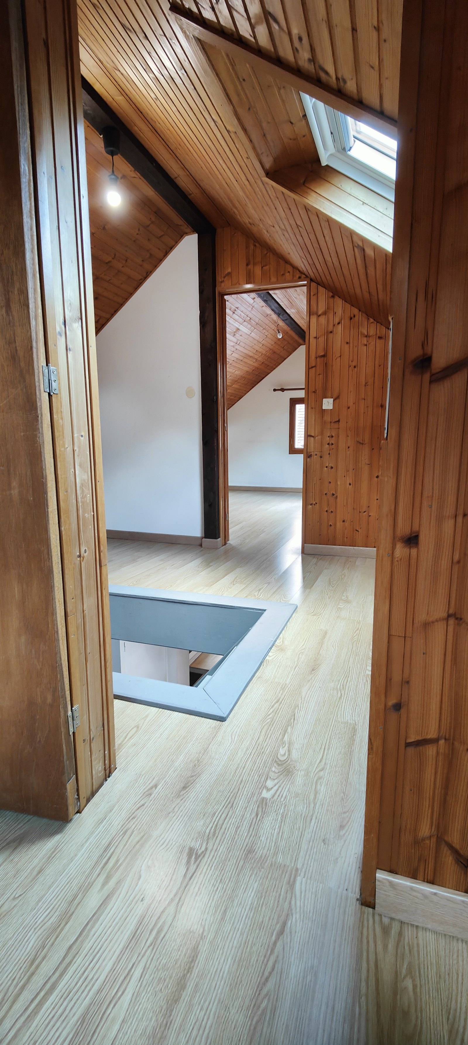 A l'étage, une spacieuse cuisine équipée récente, la pièce de vie et un toilette. Le dégagement vous permettra d'accéder à la terrasse.