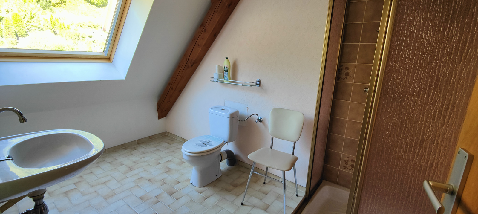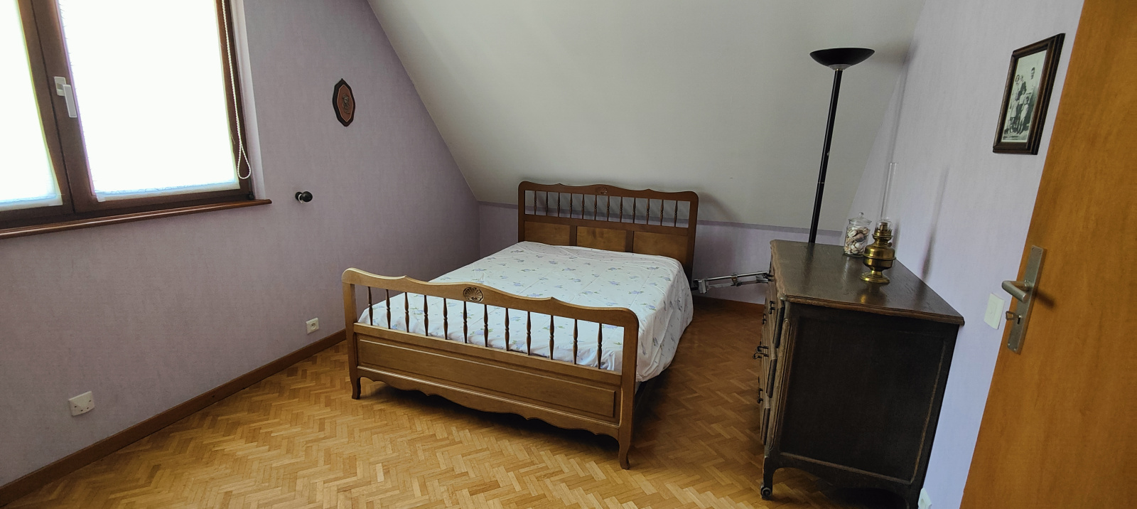 A l'étage, deux autres chambres de surface généreuse qui bénéficient chacune d'un bel espace en sous-pente pouvant être aménagé en dressing par exemple. Puis, un bureau et une seconde salle d'eau/toilette.