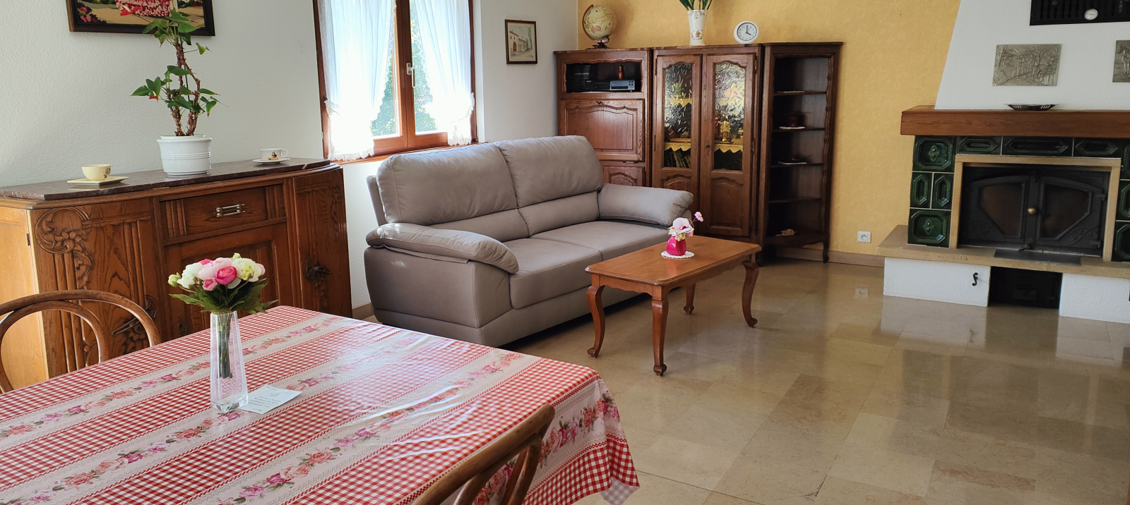 Cette maison est chauffée par trois systèmes différents : une chaudière fuel de 1997, une pompe à chaleur (couplée avec le fuel) installée en 2011, puis un poêle de masse présent dans le séjour et permettant de chauffer l'ensemble de la maison. Le système au fuel et la pompe à chaleur fonctionnent par le sol (au rez-de-chaussée).